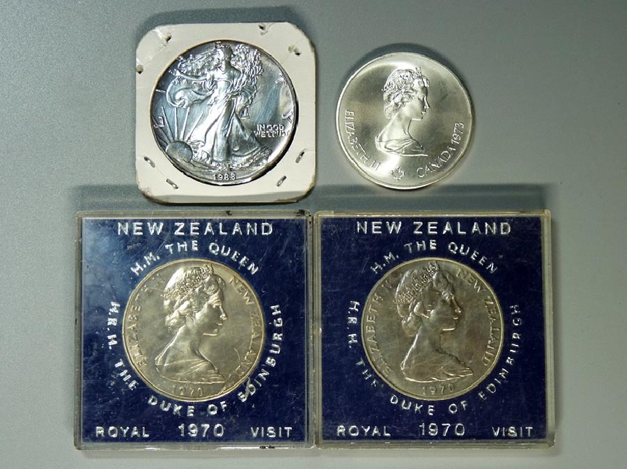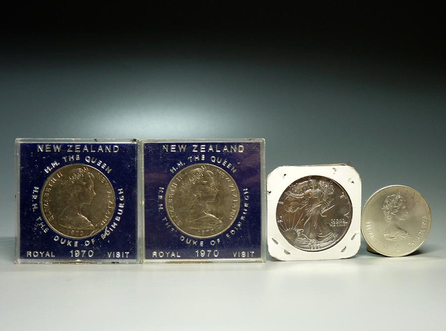 【夢たま】蒐集かの放出品!ニュージーランド 二枚 カナダ アメリカ 銀貨 コイン 四枚☆ サイズ・ニュージーランド幅約3.8㎝。厚さ約2.8mm。27.2g。二個。カナダ幅約3.79㎝。厚さ約2.5mm。重さ24.5g。 アメリカ幅約4.05㎝。厚さ約3mm。重さ約31.4g。 【商品説明】:蒐集かの放出品!ニュージーランド 二枚 カナダ アメリカ 銀貨 コイン 四枚の出品です。 蒐集家から出てきたものです。鑑定は行っておりません。専門外の為、詳しい詳細は解りかねます。 お詳しい方、宜しくお願い致します。 【状態】:若干の薄汚れ、スレ等がありますが、状態は良好と言えます。時代経過による前記傷みはご了承ください。 |