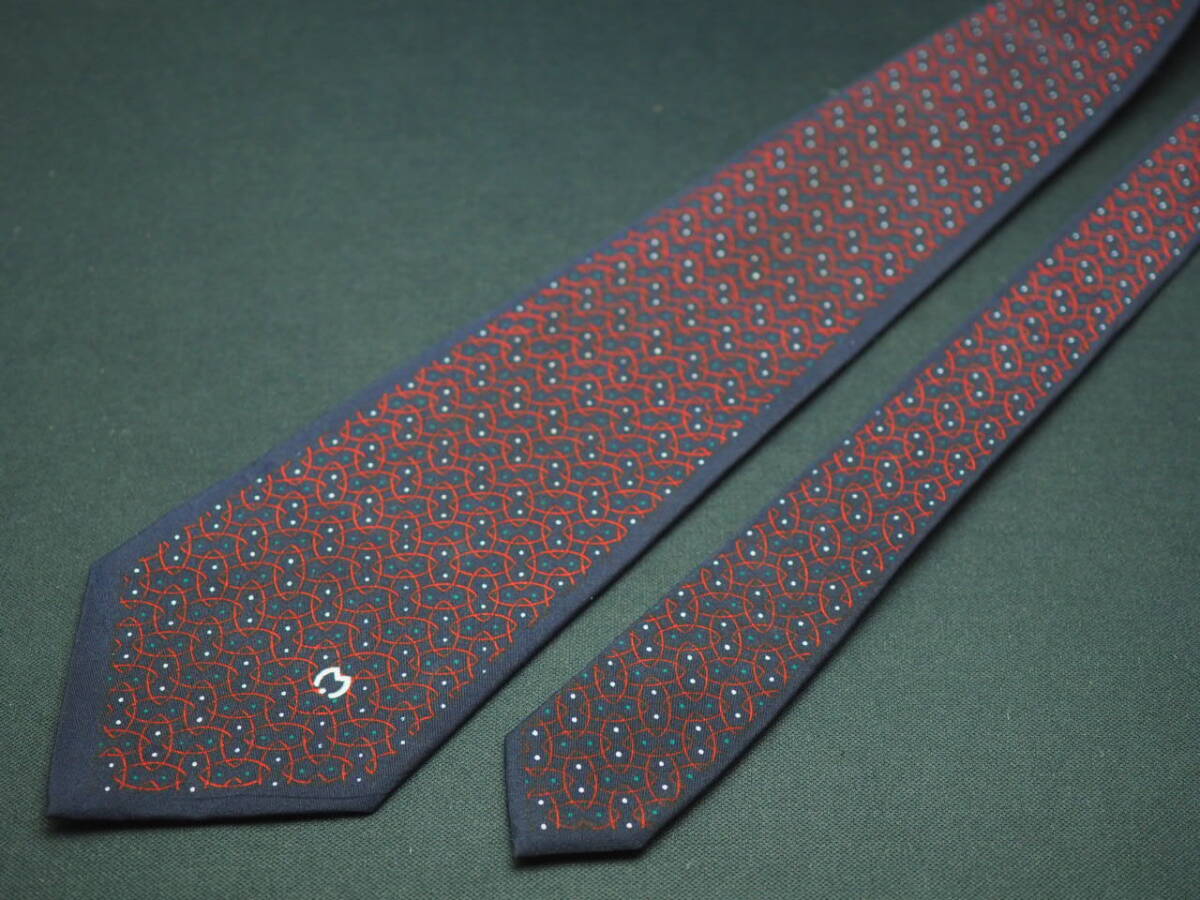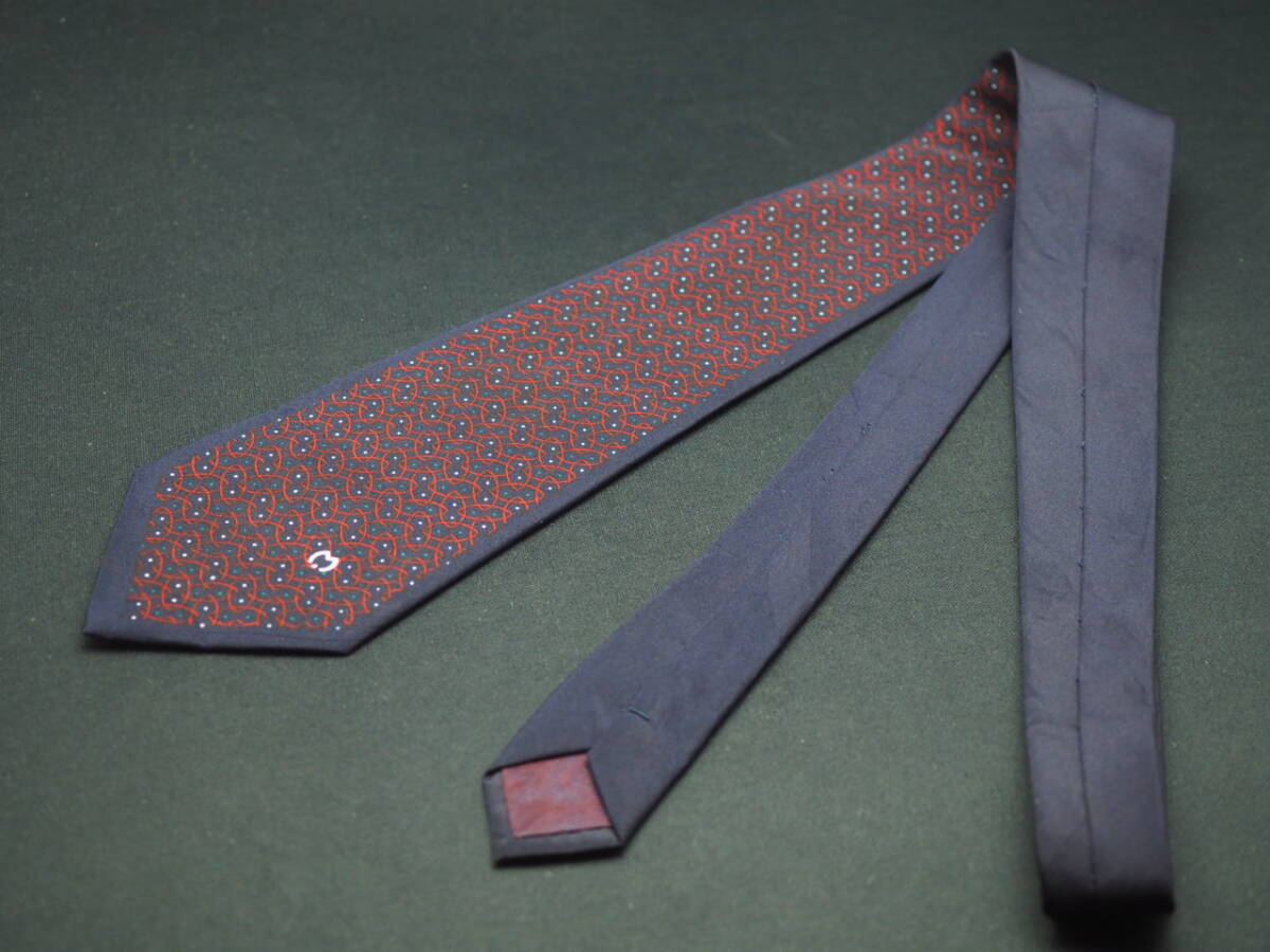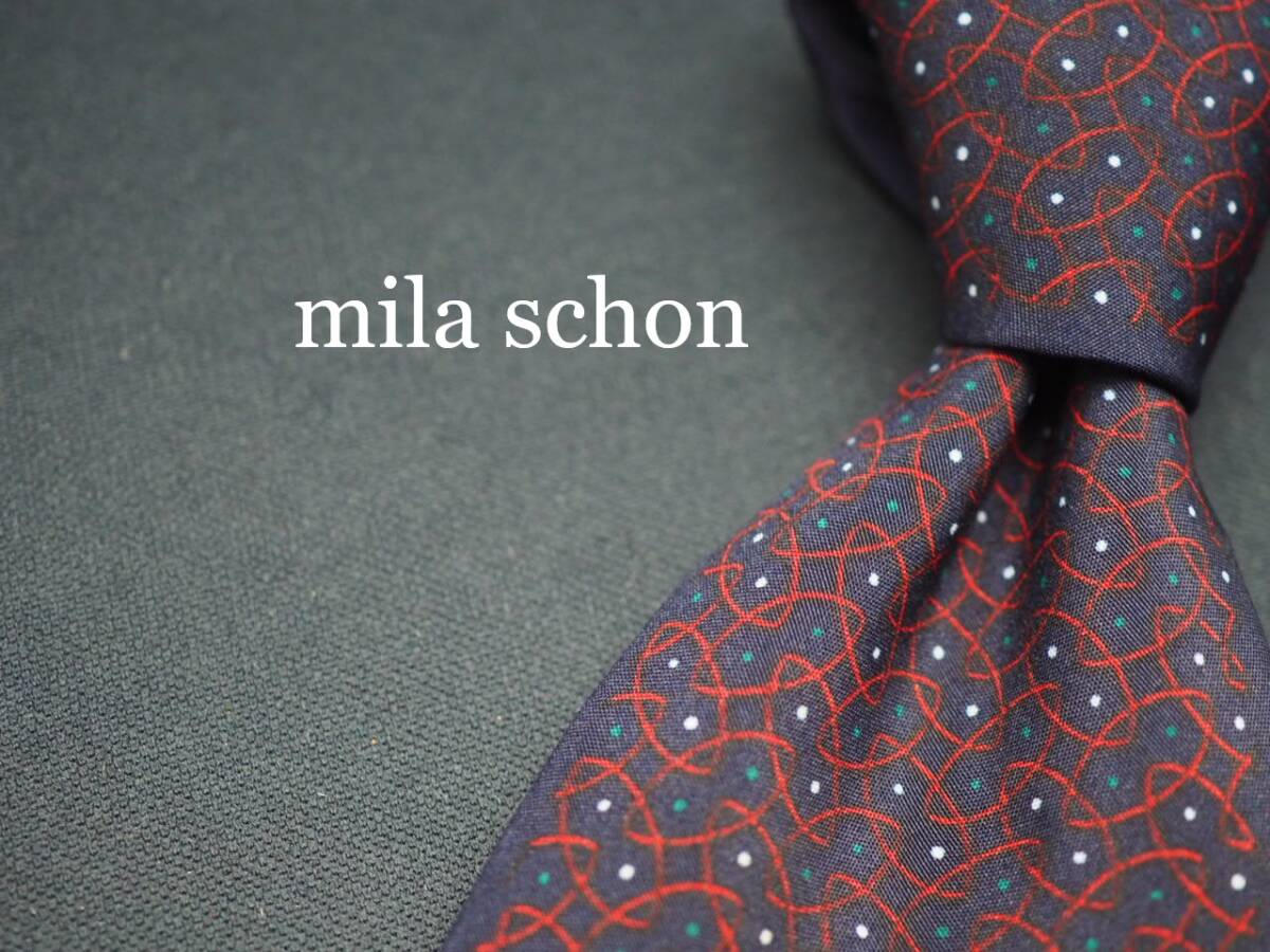 美品【Mila Schon ミラショーン】 F1408 ネイビー赤系 SILK ブランド ネクタイ 古着 良品