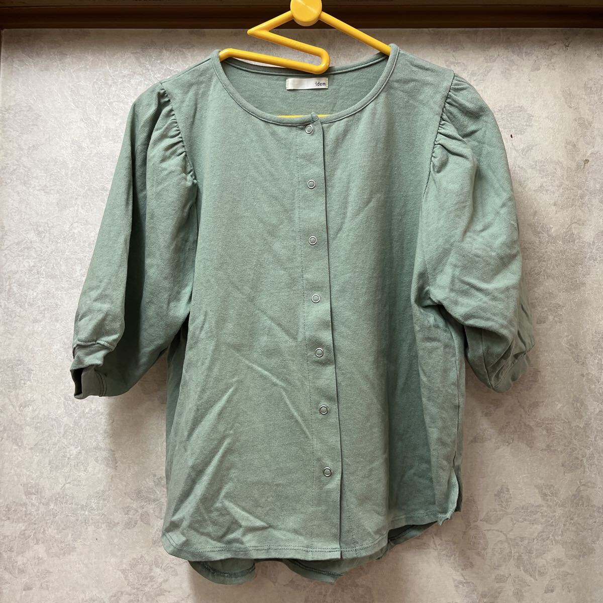 ★idem★イデム 半袖 カットソー カーディガン コットンシャツ F パステルグリーン 綿100% アシンメトリー パフ袖 です。