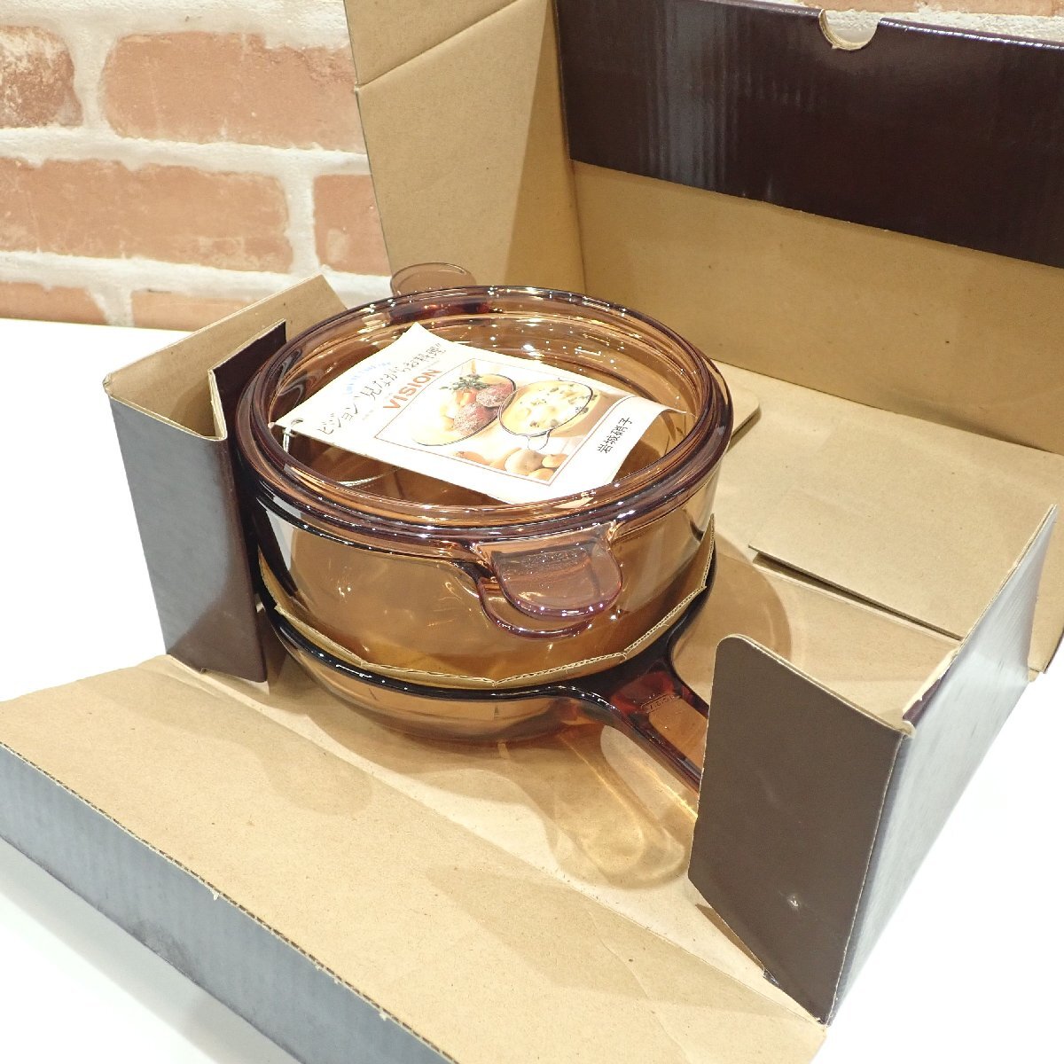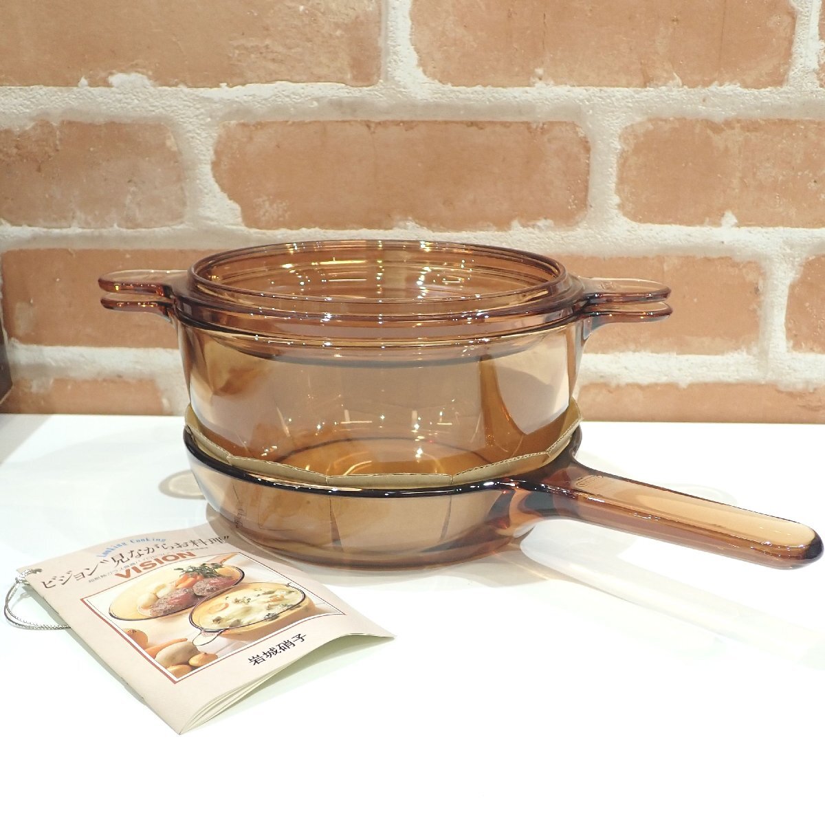 | 商品 | 美品 VISION パイロセラム ST-50SA 特撰ビジョンペアセット 岩城硝子 両手鍋:高さ(約)9.5cm、フライパン:高さ(約)4.5cm ※幅はそれぞれ(約)18.5cm | ||