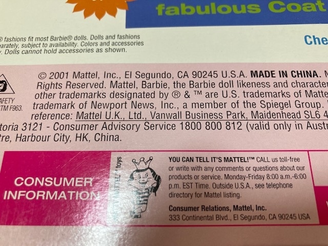 Barbie Coat Collection Fashion Avenue OF 新品未開封!