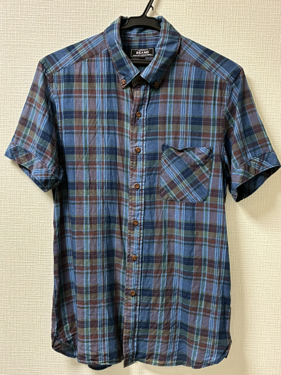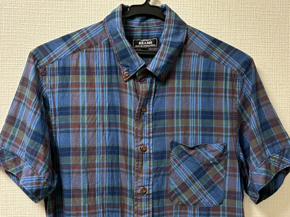 [中古格安] BEAMS メンズ 半袖シャツ ブルー チェック Mサイズ ビームス 青