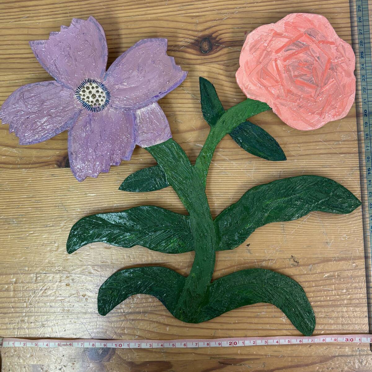 | M1285/イラストレーター そで山かほ子 花 オブジェ 2023/看板 手描き看板 Kahoko Sodeyama 作品 1点物 オリジナルアート作品 |