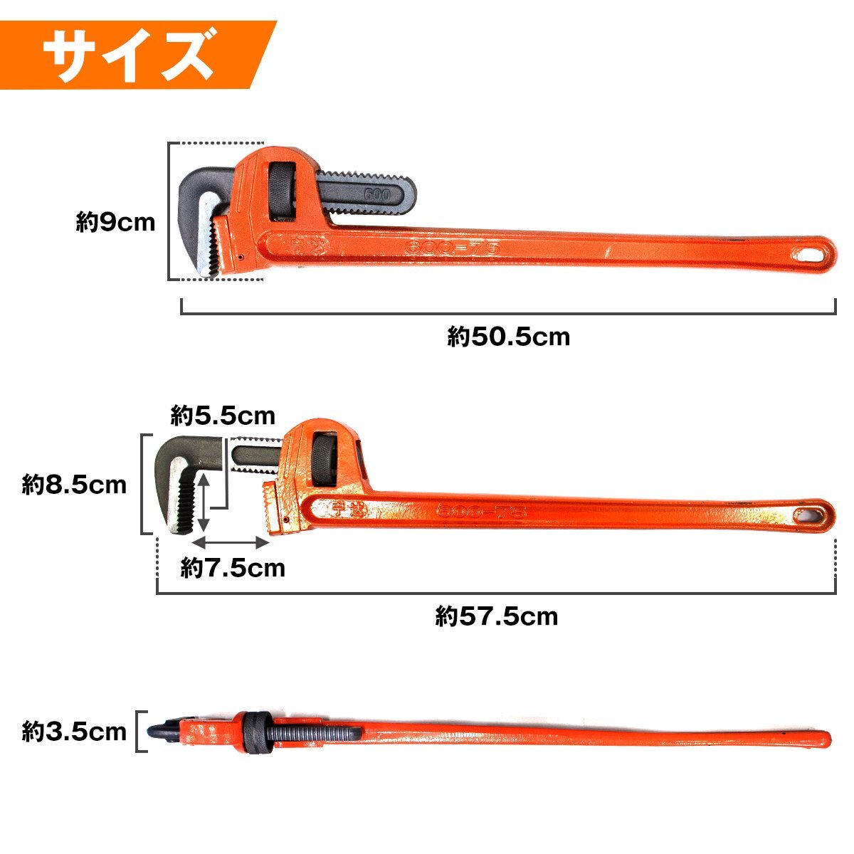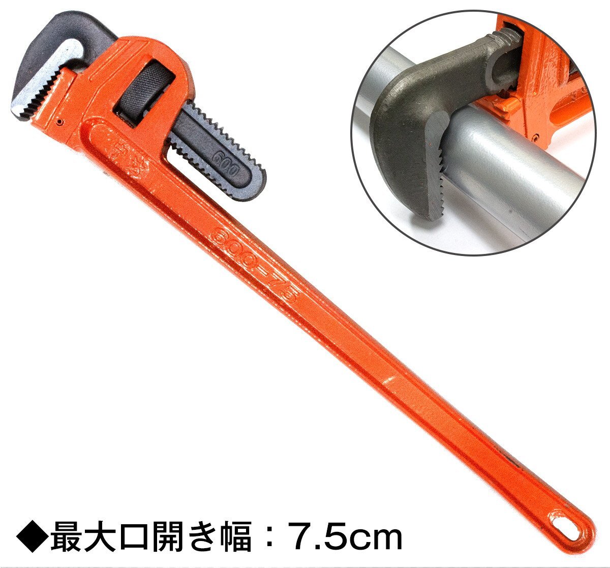 パイプ レンチ 全長600mm 開口 75mm トライモ型 配管 鋼管 鉄管 工事 丸 アルミ パイプ 水道 ガス 管 パイレン 締め 工具 DIY