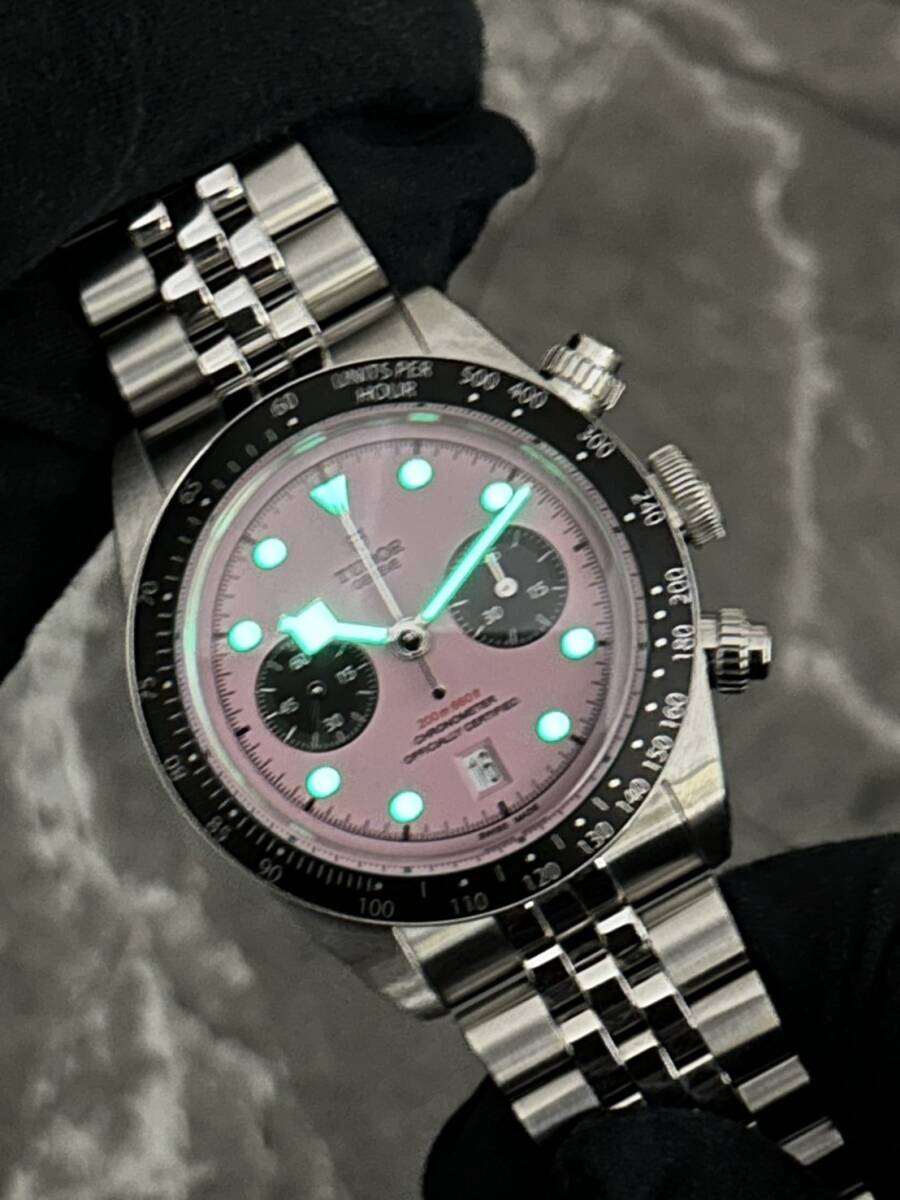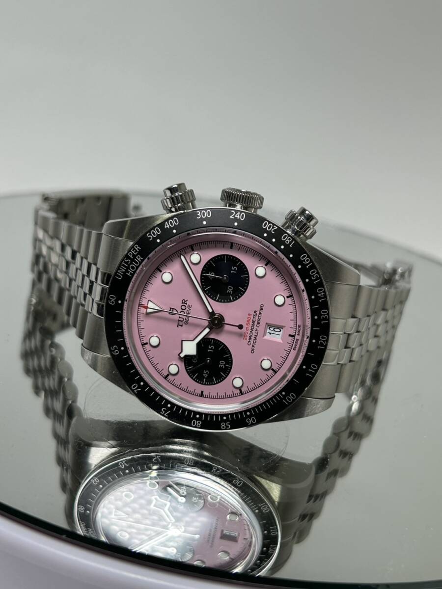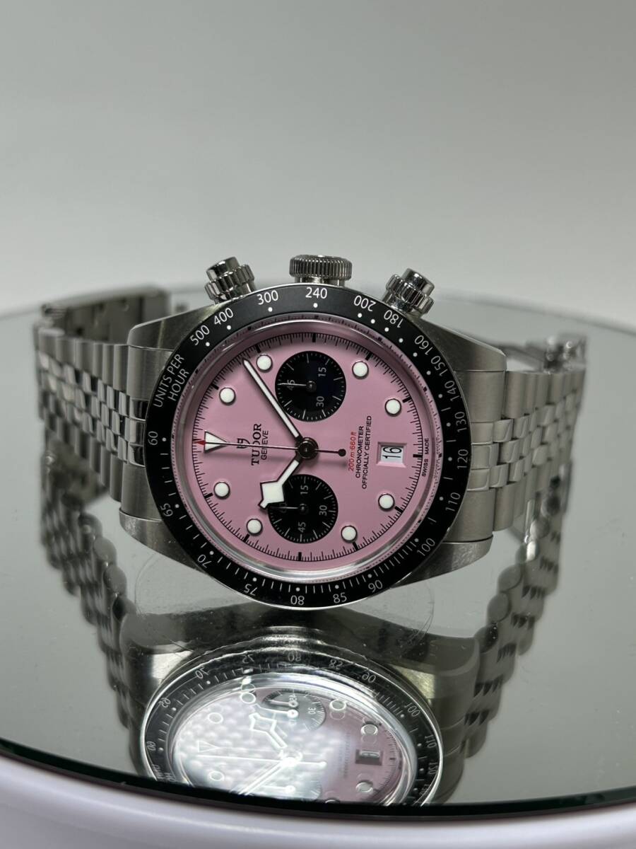 高い防水性とパワーリザーブをほこるチューダーの人気モデル、ブラックベイクロノ、ピンク文字盤が入荷致しました!