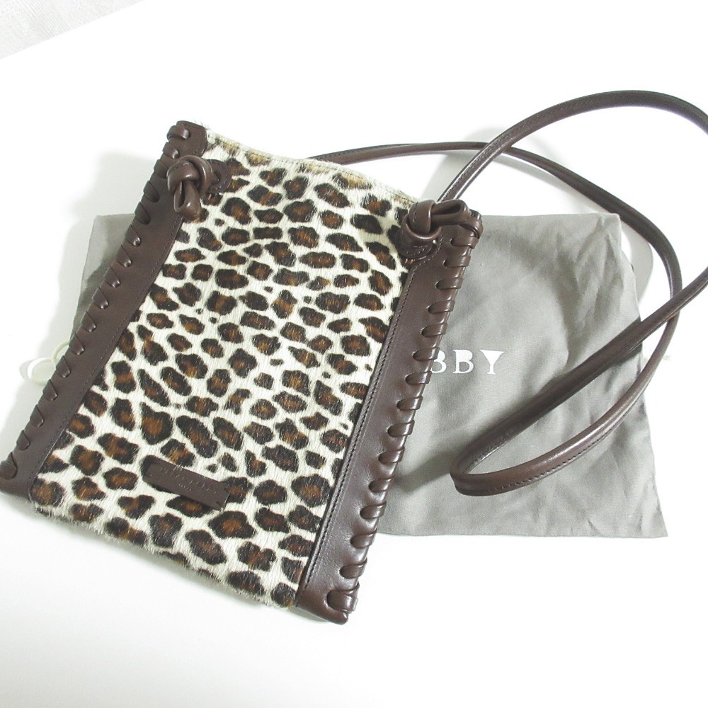 美品 URBAN BOBBY アーバンボビー Vanves mini ハラコ レザー レオパード柄 ショルダーバッグ ポーチ ブラウン系