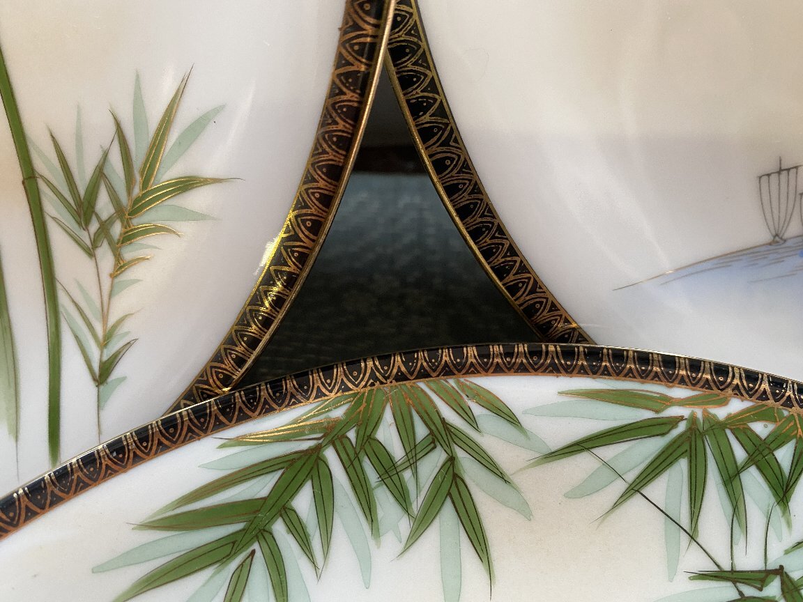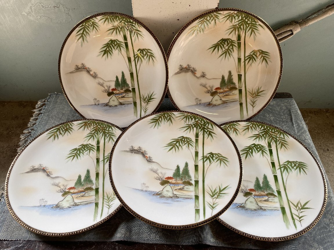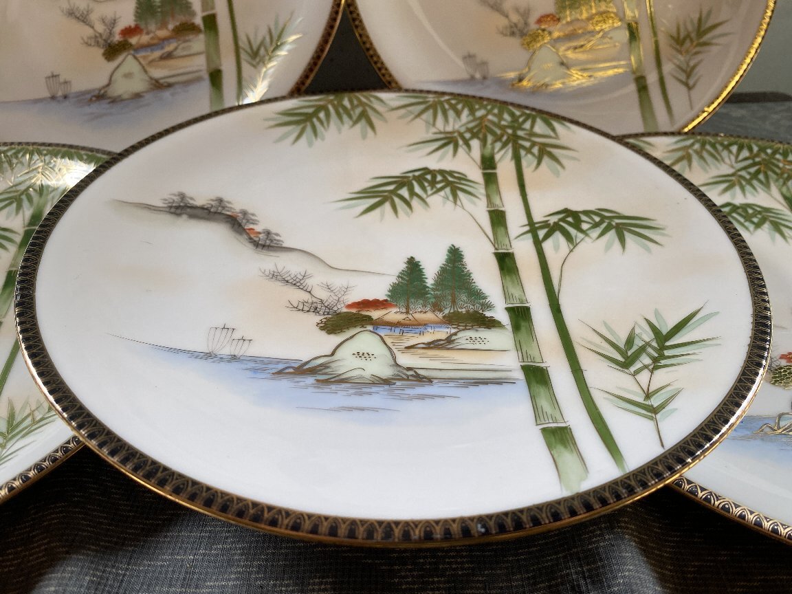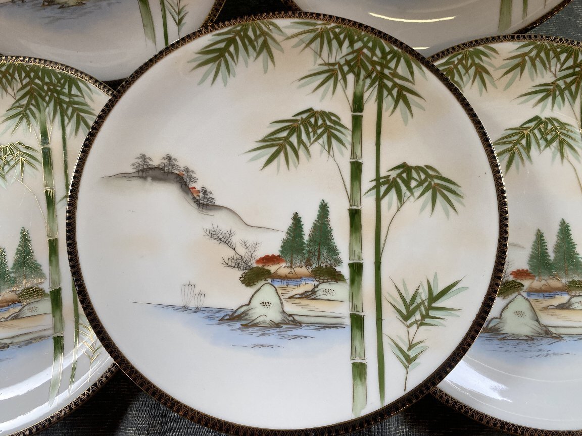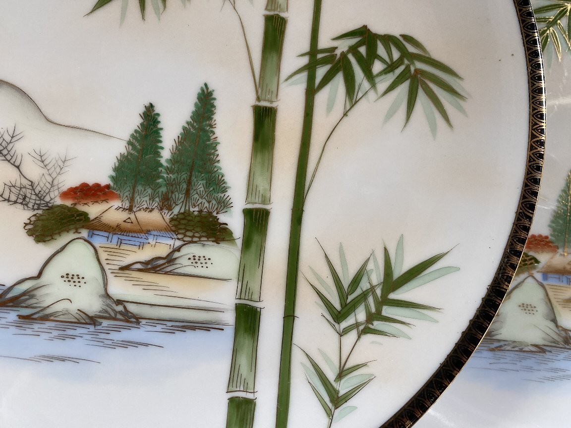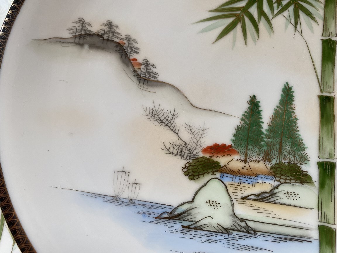 海外輸出用! 九谷焼 FUJIYAMA 横浜 大皿5客 直径26.2cm 竹山水▼手書き磁器