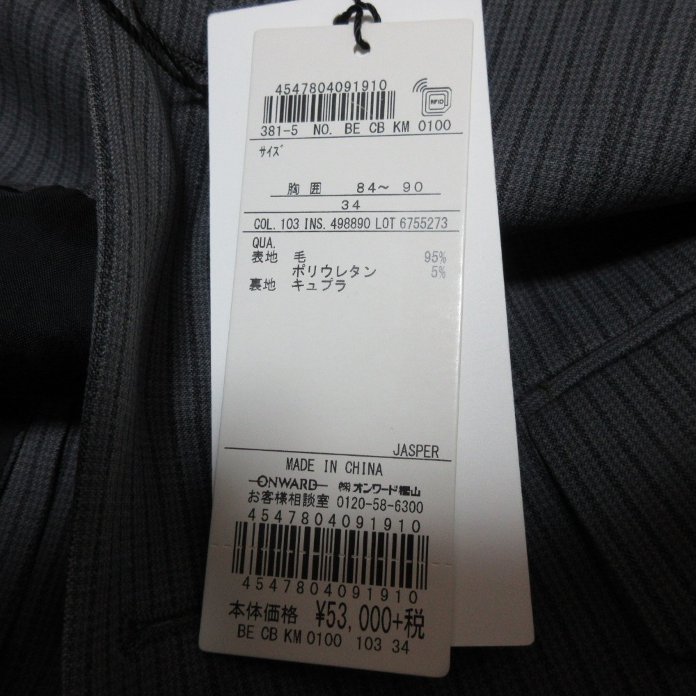 商品名:CK Calvin Klein カルバンクライン ピンストライプ ストレッチ シングル テーラードジャケット 34 グレー