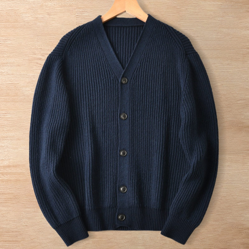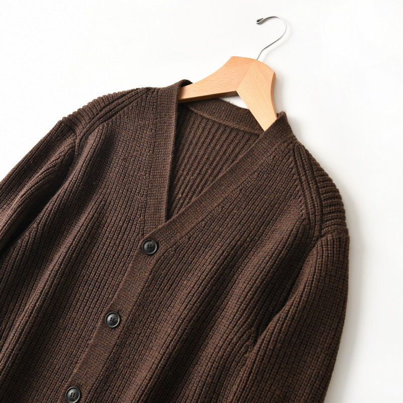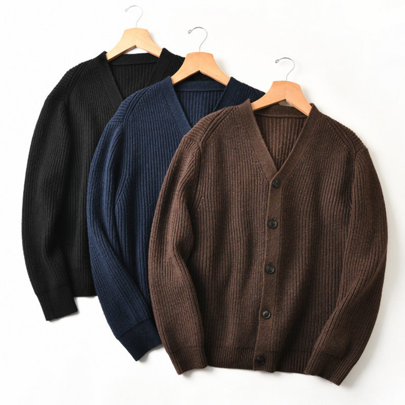 Y6275-M ネイビー 新品 ウール混 カーディガン Vネック 柔らか 暖かさ 秋冬 通勤 セーター ニット ジャケット メンズ アウター トップス