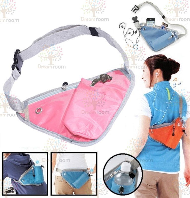 イヤホンホール付 トライアングル ランニング ポーチ ピンク 軽量 ウエストバッグ 反射素材 夜間反射 旅行 遠足 サイクリング 登山 多機能
