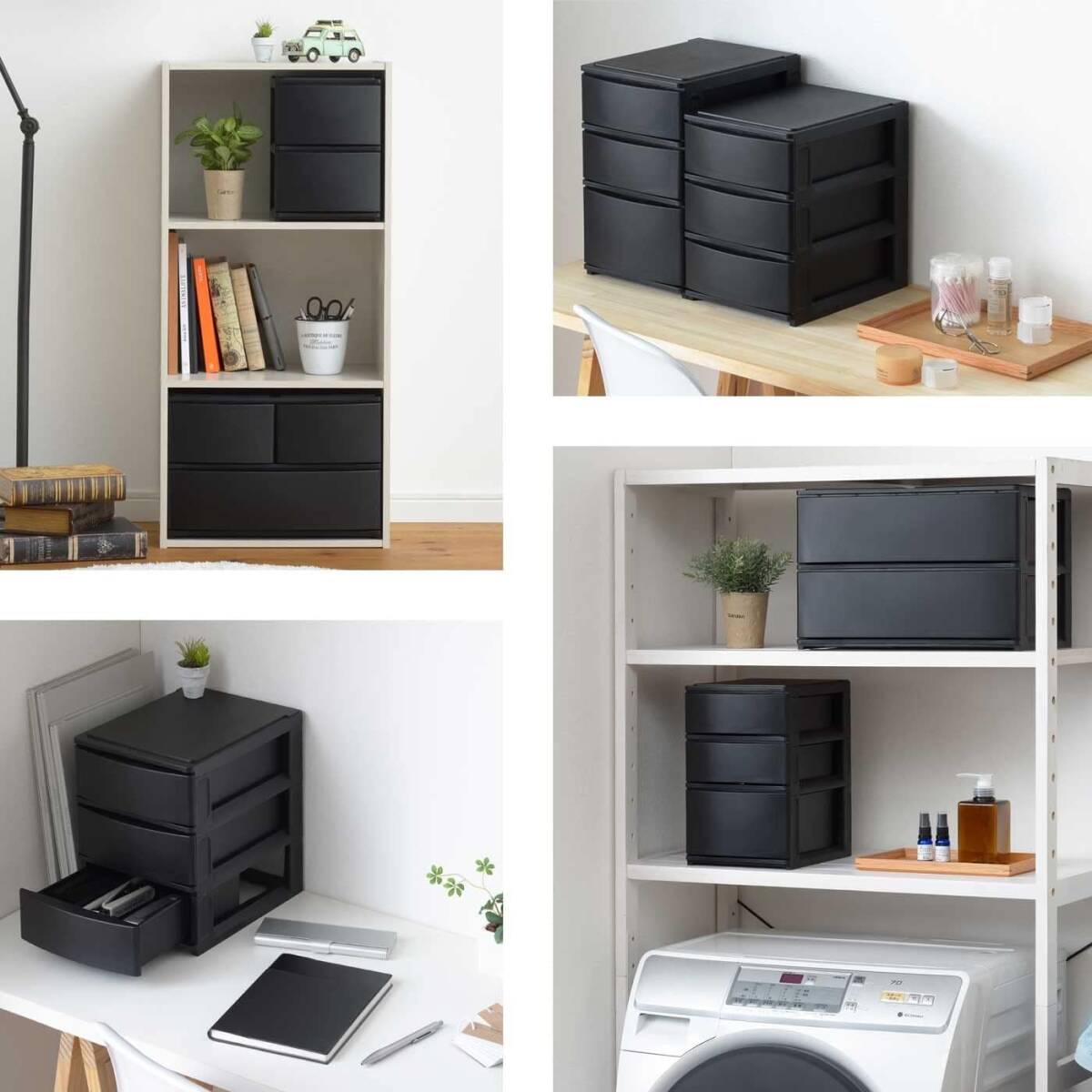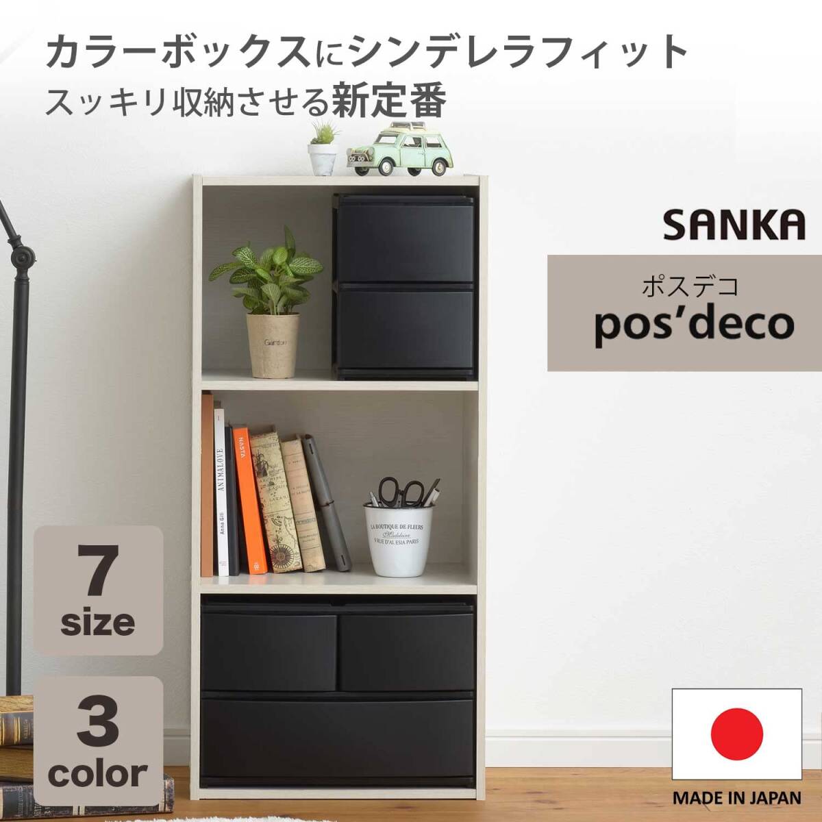 サンカ ポスデコ カラーボックスにピッタリフィット 引き出し収納ボックス ハーフ 深2段 ブラック ずれを防ぐラバーストッパー 重ねて使え