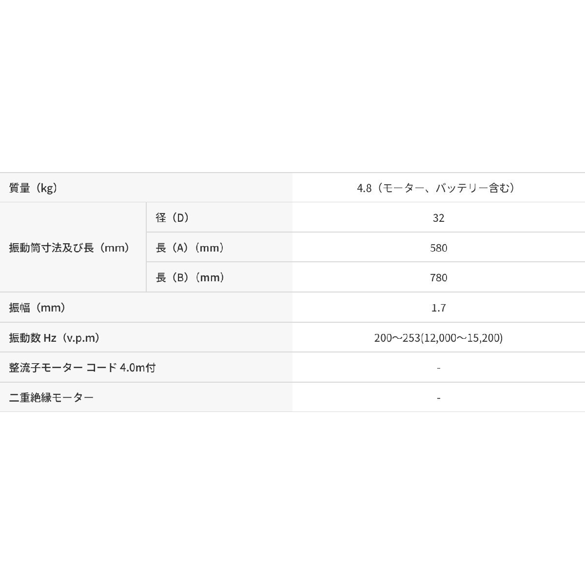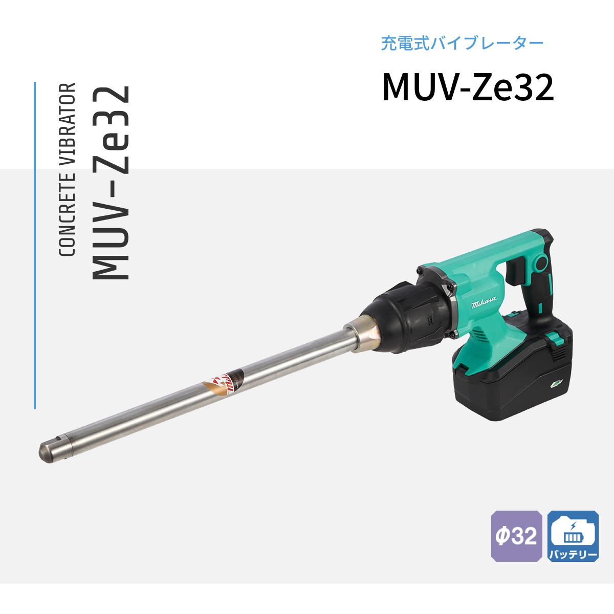パワフルで高性能な三笠充電式電直バイブレーターハイパワー充電式モーターの採用により、従来製品に匹敵する最大振動数Hz 15,200v.p.mを実現しました。※コードレスなので、ひとりでも作業が可能です。現場のすみずみまで作業を行うことができます。現場に合わせてパワーモード/省エネモードを選ぶことができます。最大運転時間 パワーモード:約45分/省エネモード:約1時間。耐久性を追求した設計により、メンテナンスフリーで長寿命が期待できます。※従来製品(コード付き):最大15,500v.p.m