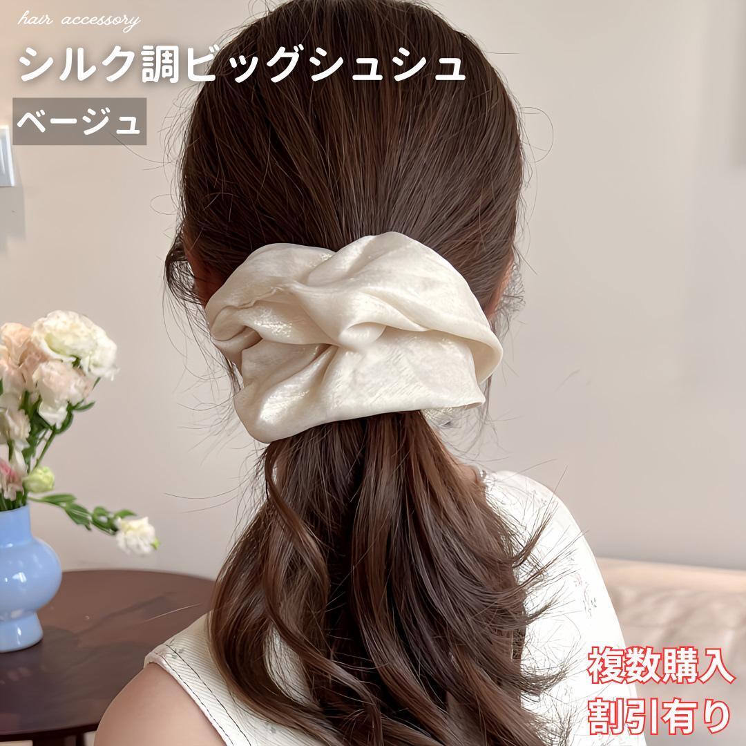 ヘアアクセ シルク調 大きめ シュシュ ベージュ ヘアゴム 髪飾り 髪留め おしゃれ