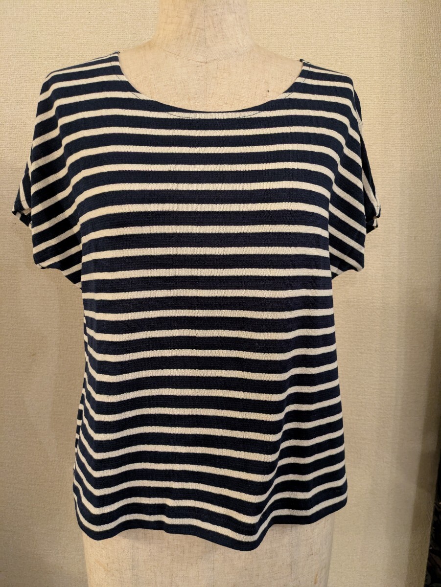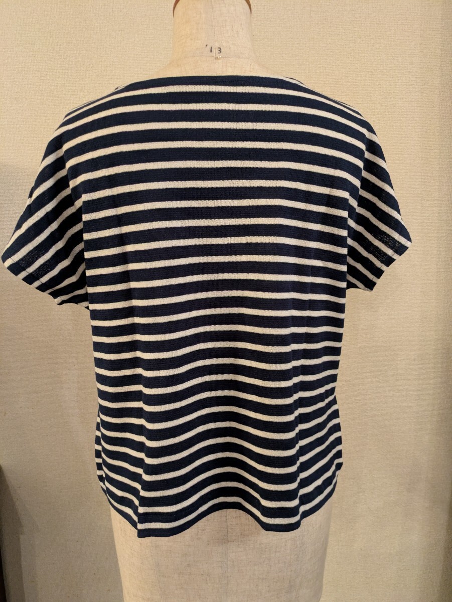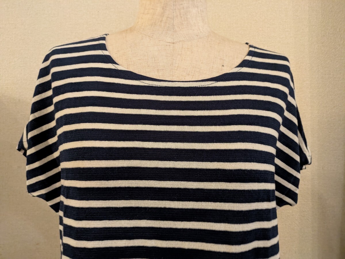 綿ポリエステル混の、シャリ感のある、ボーダー生地を仕立てました。