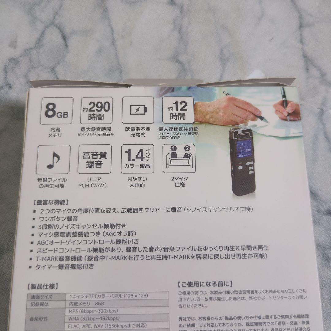 8GBの大容量で290時間の高音質録音が可能なICレコーダー。