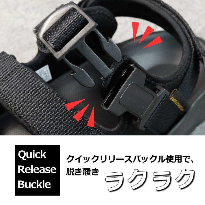 足首部分のクイックリリースバックルがで脱ぎ履き簡単!
