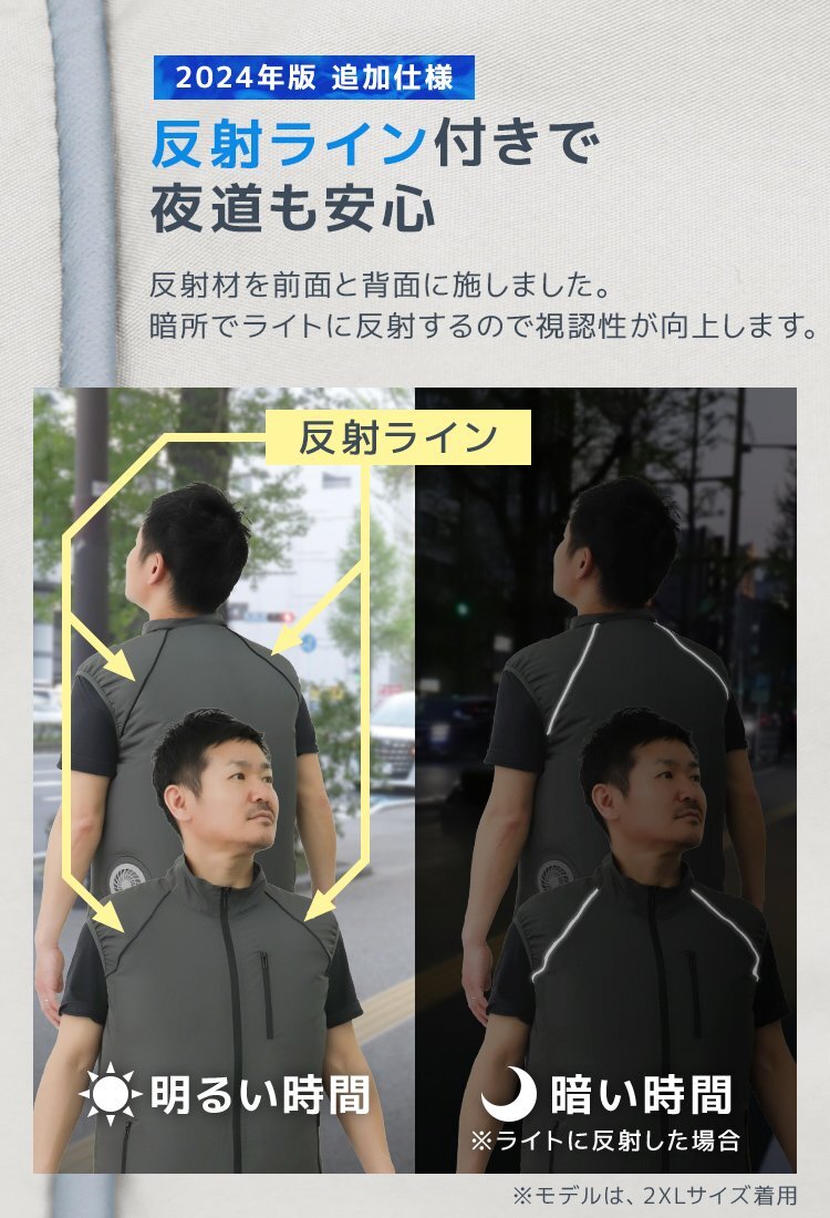 暑い夏の熱中症対策に!最強空調作業服! 2基のファンで風を取り込み、衣服内を巡って全体に送風します。 市販のモバイルバッテリーで動作します。 3段階の風量調整可能でいつでも快適! \2024年改良しました/ ・裾を幅広ゴムにし風を逃さない ・反射ライン付で夜道も安心 ・ポリエステル100%で撥水、速乾! 等 作業ウェアはご家庭の洗濯機で洗えます。 汗をかいても汚れても、いつでも綺麗な状態で着れます♪ この夏、いろいろなシーンで大活躍間違いなし! レジャーやアウトドア、運動時、屋外での作業・仕事、お出かけ時など。 【商品詳細】 カラー:ダークグレー サイズ:Lサイズ 素材:ポリエステル100%(生地)、ABS(ファン) 風量調整:3段階(弱風 / 中風 / 強風) 稼働時間:約5~13時間(12,800mAhの場合) ※稼働時間はバッテリーの状態により時間が変わります 【商品内容】 本体、ファン×2、ケーブル×1、日本語取扱説明書 (ファン付き作業服 空調服ベスト ファン付きベスト 空調ファンベスト 作業服 涼しい 暑さ対策 人気 おすすめ 安い 送料無料 WEIMALL)