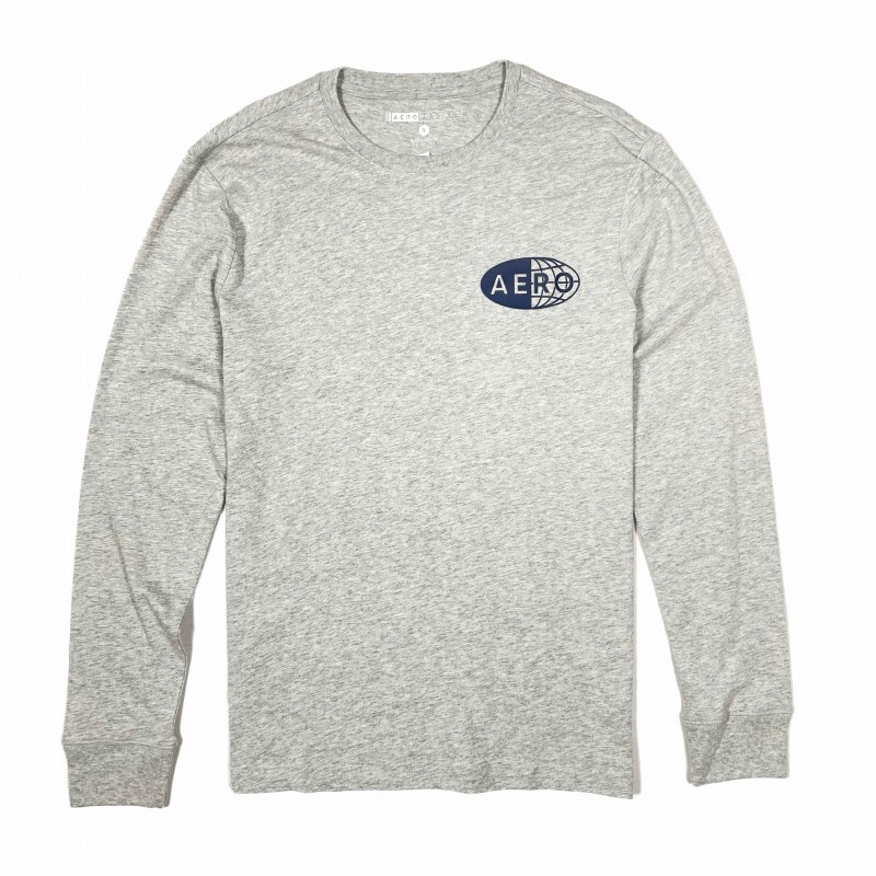 フロントと背面にブランドロゴと地球を組み合わせたグラフィッの長袖Tシャツ。