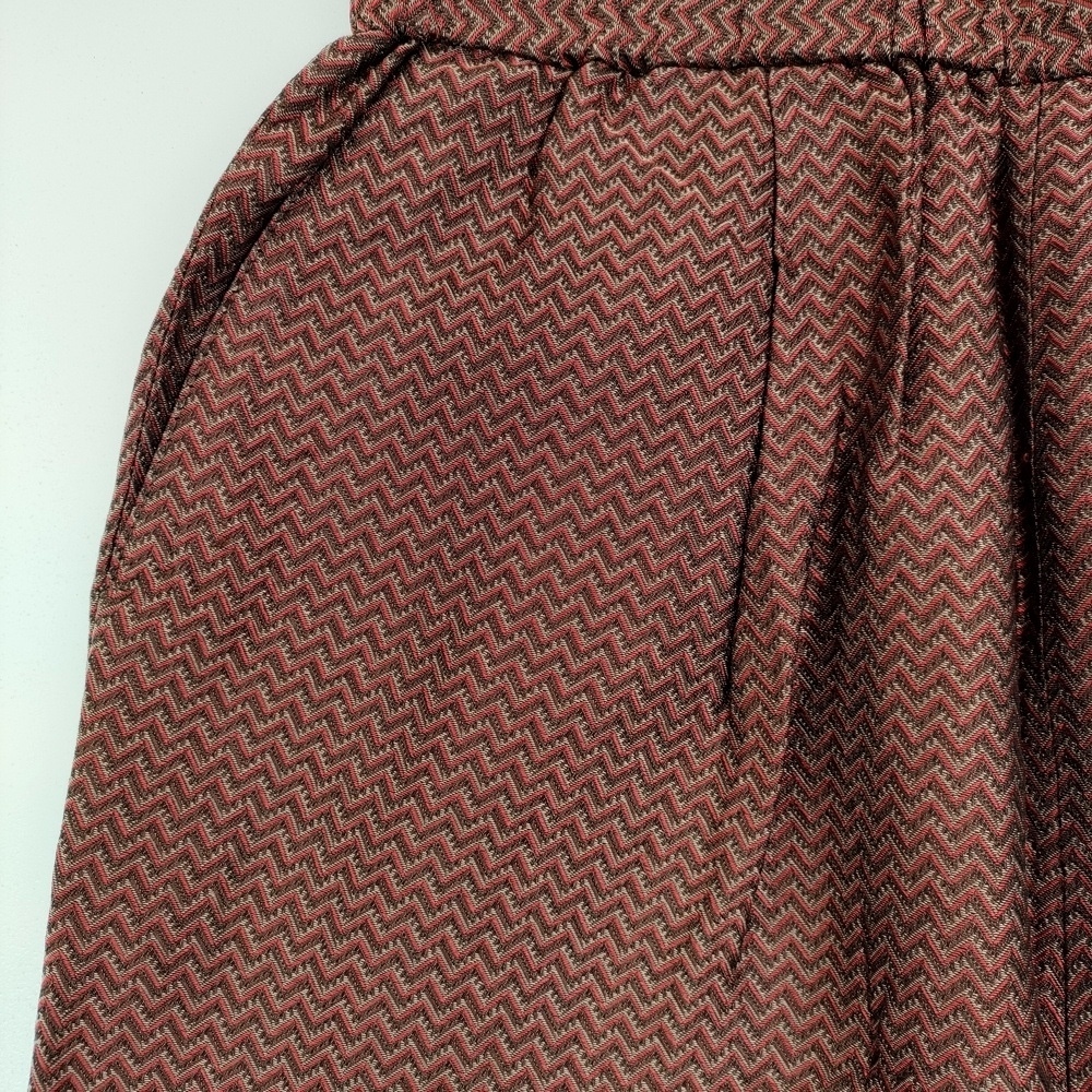 | 仕様 | フロント:なし ポケット:あり 透け感:ややあり 裾:ロックステッチ ウエスト調整:ゴム(紐なし) 裏地:なし |