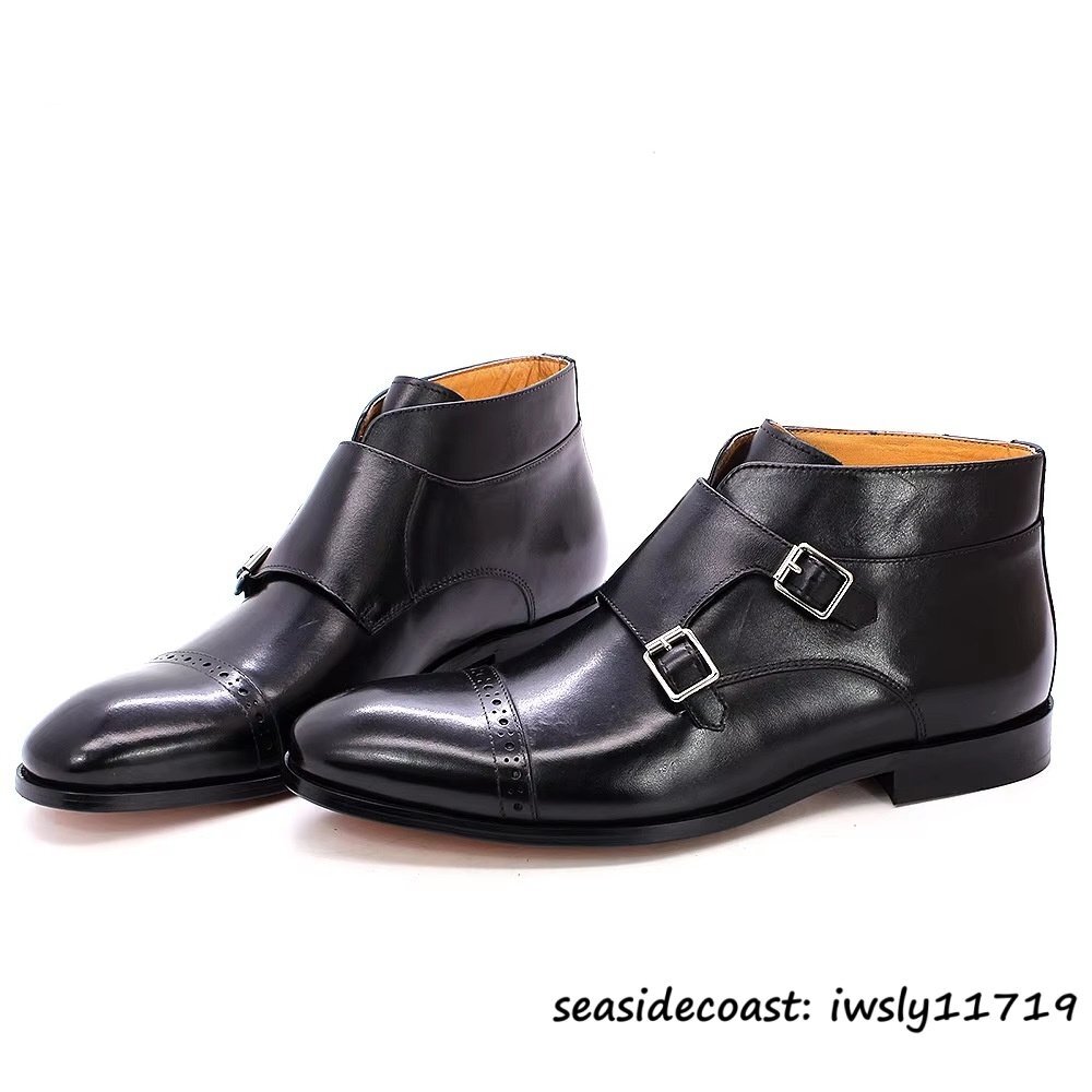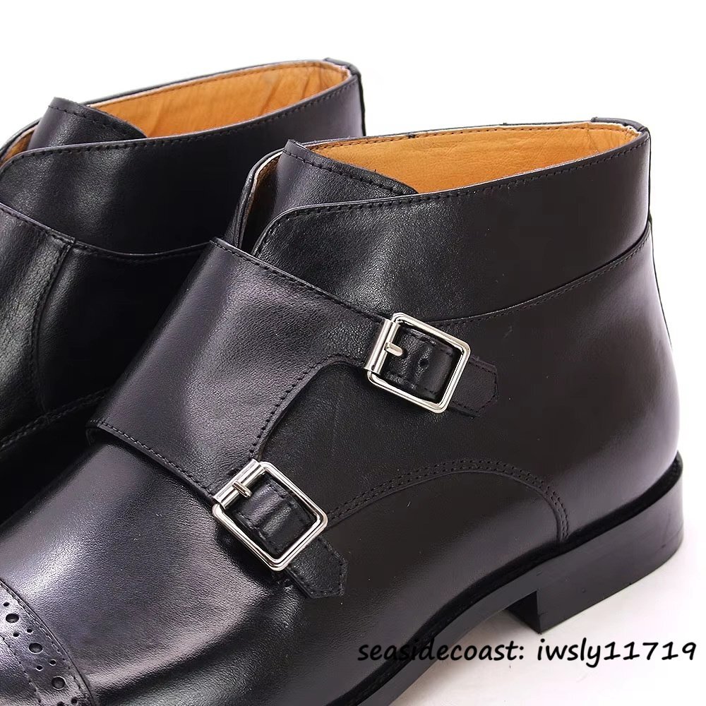定価13万*新品 レザーブーツ シークレット メンズ 本革 職人手作り ショートブーツ エンジニアブーツ ハイカット 牛革革靴 ブラック 24.5cm