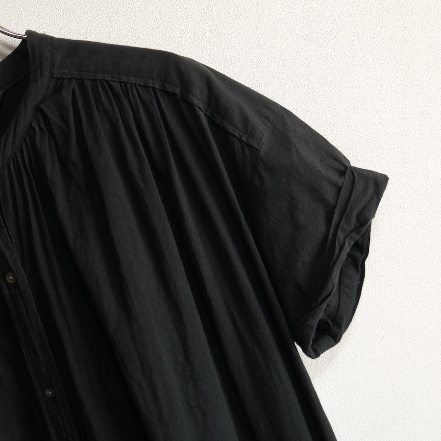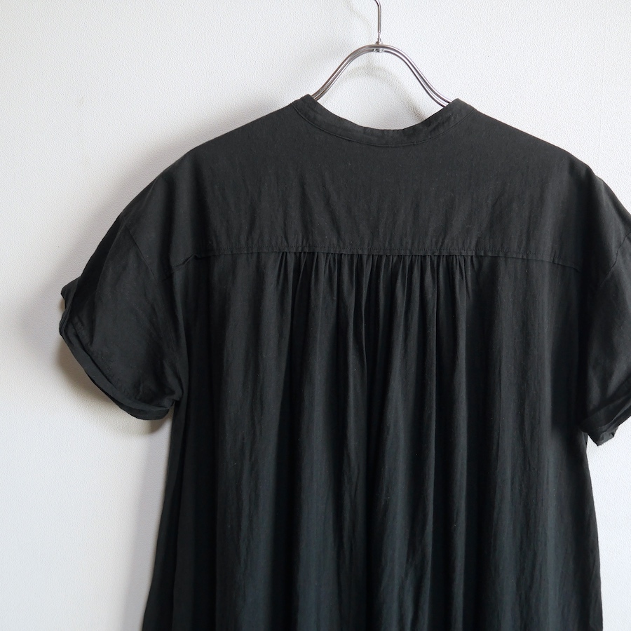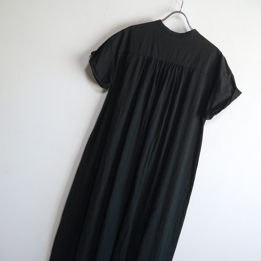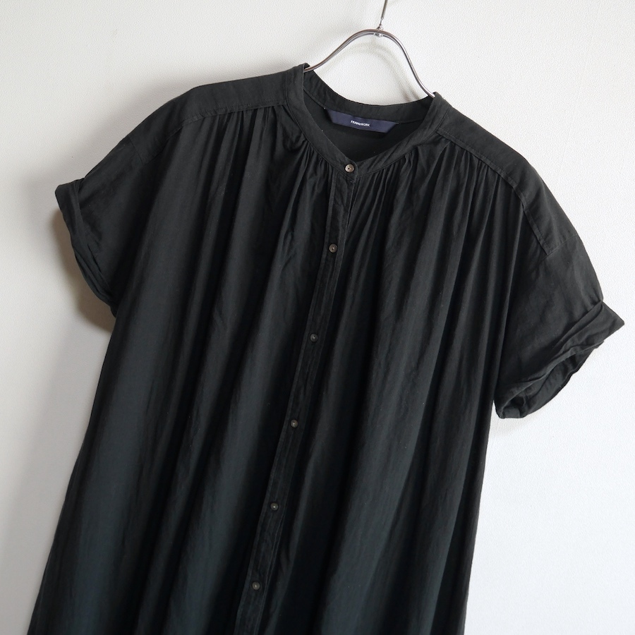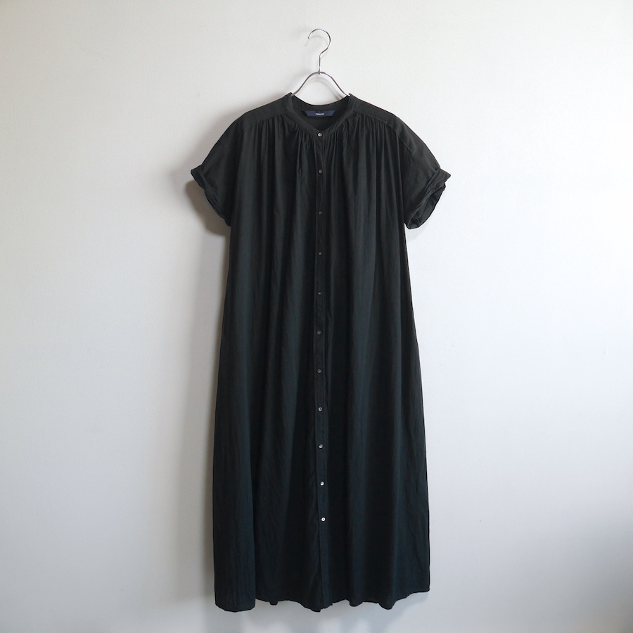 フレームワークのギャザーワンピースです。 すべての加工工程で生地を揉みこむことで、柔らかさと膨らみがあるのが特徴。 涼し気な素材感ながら、このひと手間で透けすぎずニュアンスあるカラーに仕上がっています。定価21450円です。