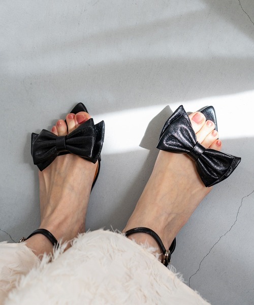 参考商品名:ポインテッドトゥ メタリック リボン サンダル