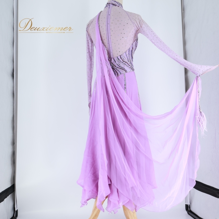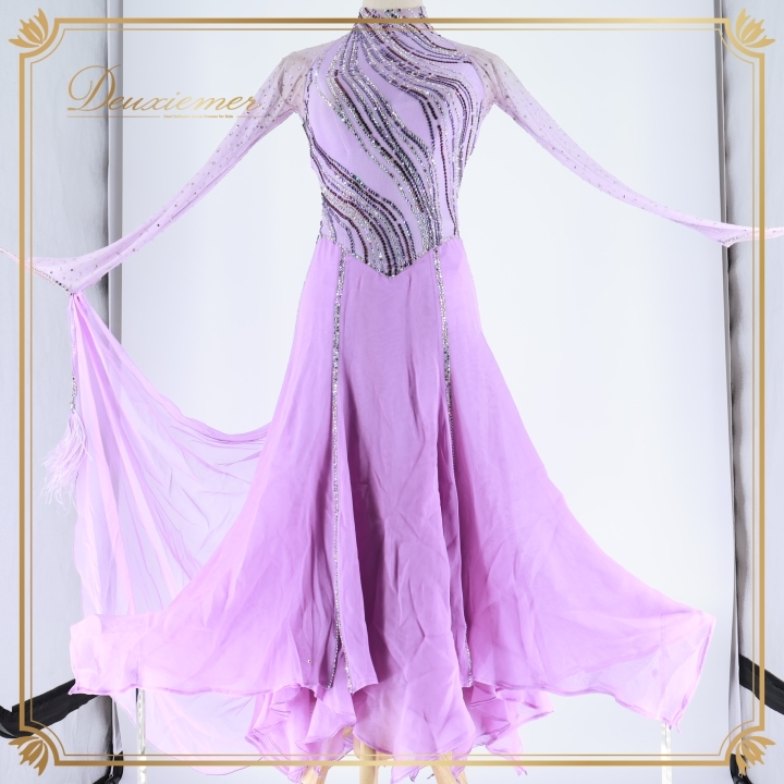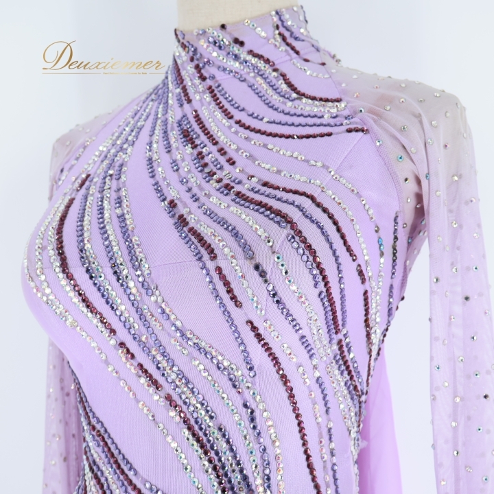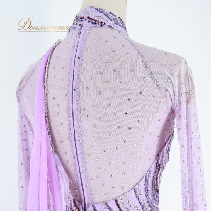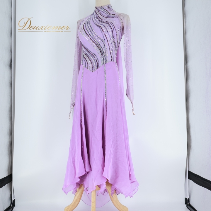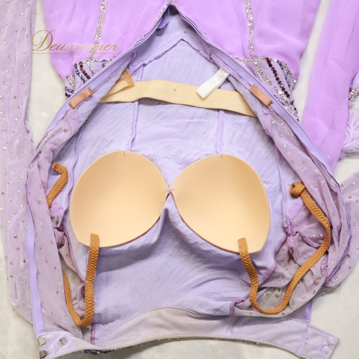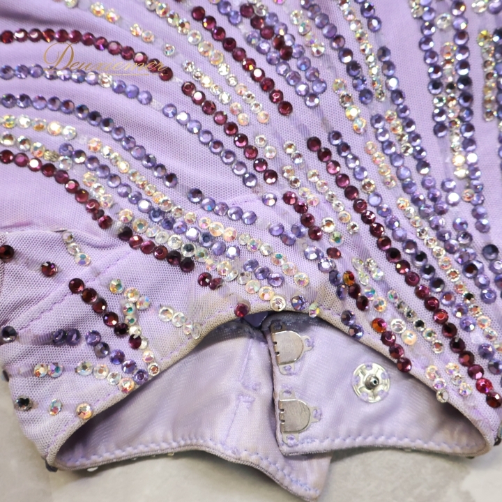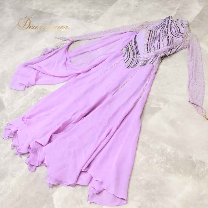| 【商品名】社交ダンス 衣装 ワンピース ドレス 【サイズ】 平置き実測:総丈約125cm(裾~首部まで)、身幅約34cm、ウエスト約27cm ※実測の為、多少の誤差はご了承ください ※7号のトルソーに少々窮屈なサイズ感です 【仕様】 ・背面ファスナー仕様 ・レオタード無し ・上半身のみ若干の伸縮性有り ・肩パッド無し ・胸パッド有り ------------------------------------ 【ポイント】 ▽ラベンダー系の優しい紫 ▽落ち感のある綺麗なデザイン ------------------------------------ 【撮影時使用トルソー】 種 類:女性用トルソー7号(少し細めのサイズです) サイズ:肩幅約37cm、バスト約83cm、ウエスト約60cm、ヒップ約81cm |
