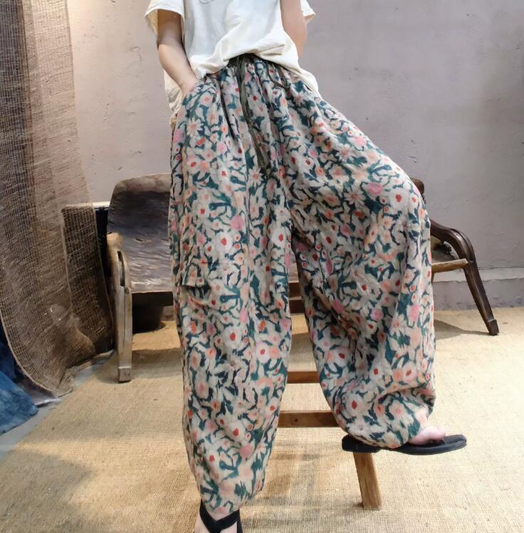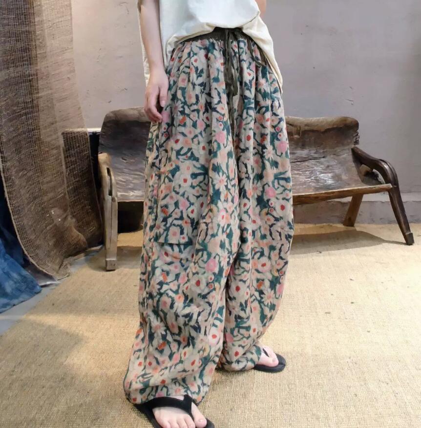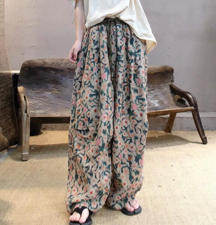 夏新入荷~オフィス 涼しい ロングパンツ ワイドパンツ レディース ガウチョパンツ 花柄 ガウチョ ボトムス おしゃれ 着痩せ 美脚 通勤~#C