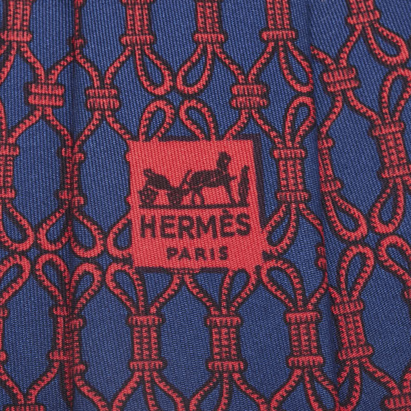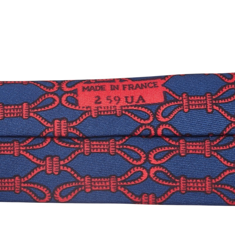 エルメス ロープ 縄 モチーフ ネクタイ ネイビー レッド シルク レディース HERMES 【中古】