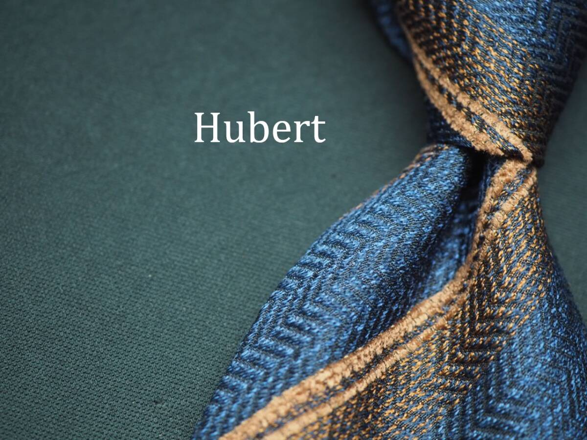 美品【Hubert ウーベルト】 F1082 ネイビー ブラウン系 SILK ブランド ネクタイ 古着 良品