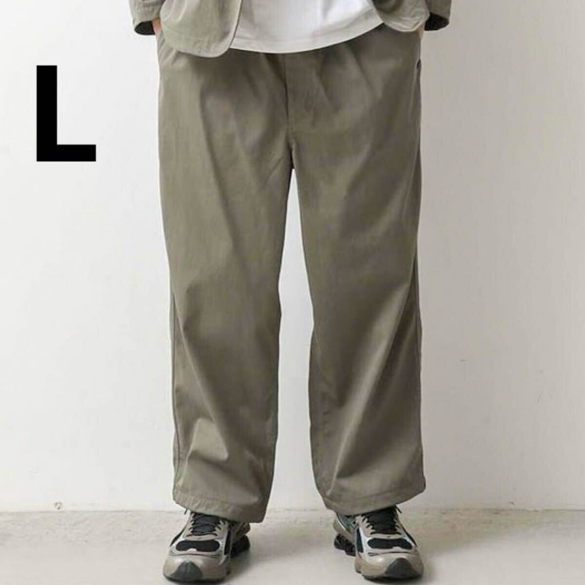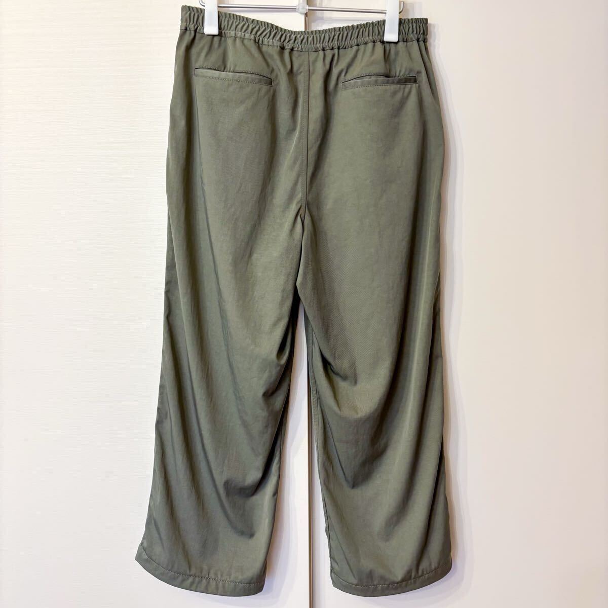 軽量素材のワイドパンツ、ゴムウエストで快適な着用感。