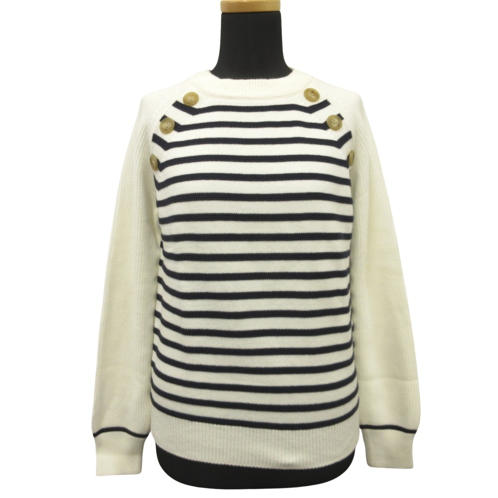 商品名:組曲 クミキョク ボーダー ニット セーター クルーネック コットン 2 白 ホワイト ネイビー