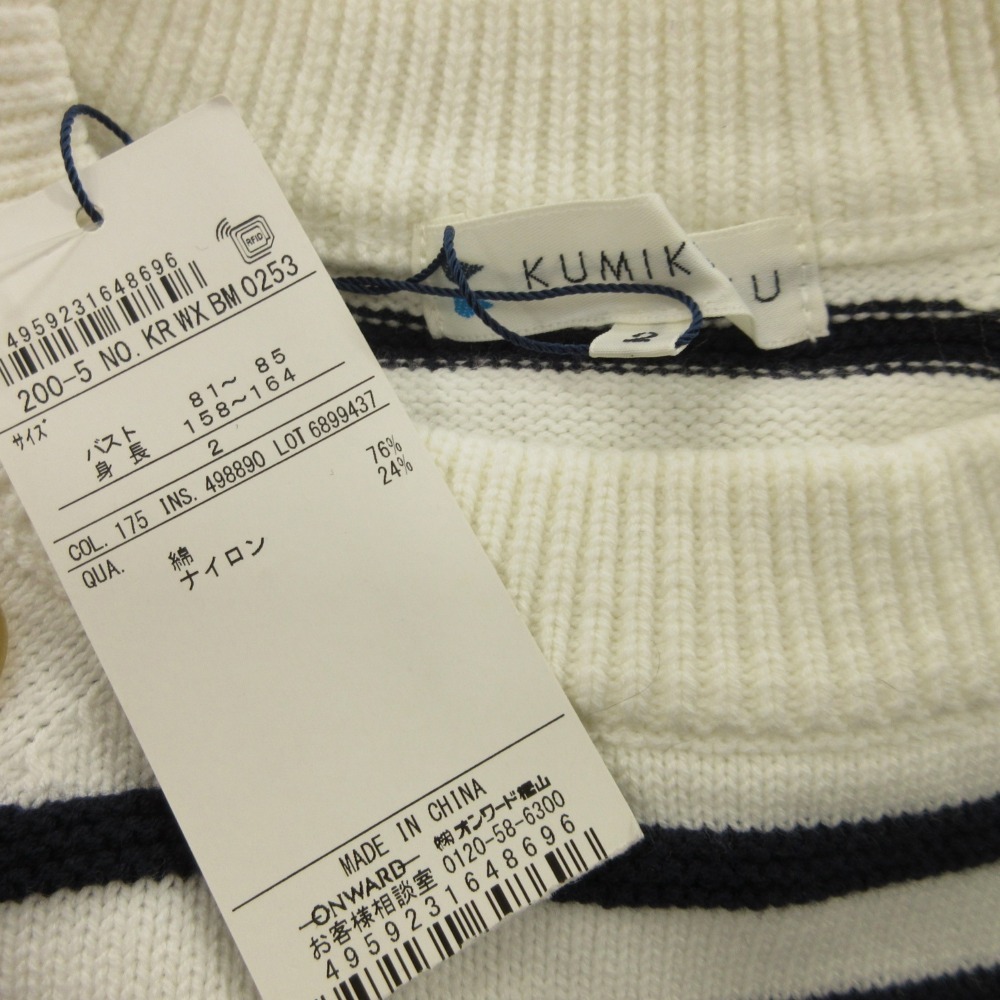 未使用 組曲 クミキョク ボーダー ニット セーター クルーネック コットン 2 白 ホワイト ネイビー