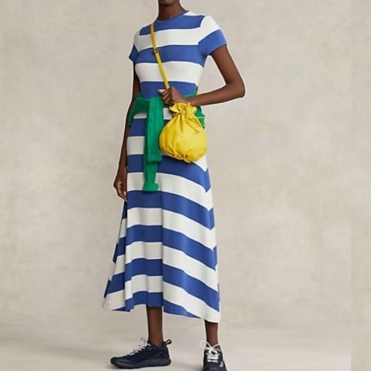 こちらの商品は、POLO RALPH LAURENのワイドストライプリブクルーネックドレスです!