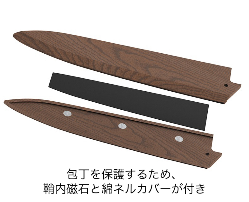 包丁を保護するため、鞘内磁石と綿ネルカバーが付き。