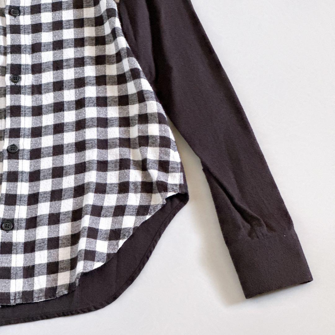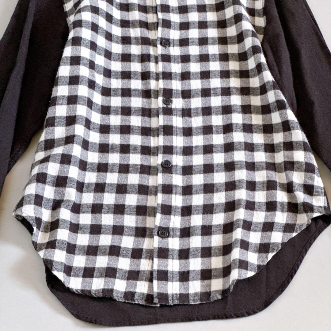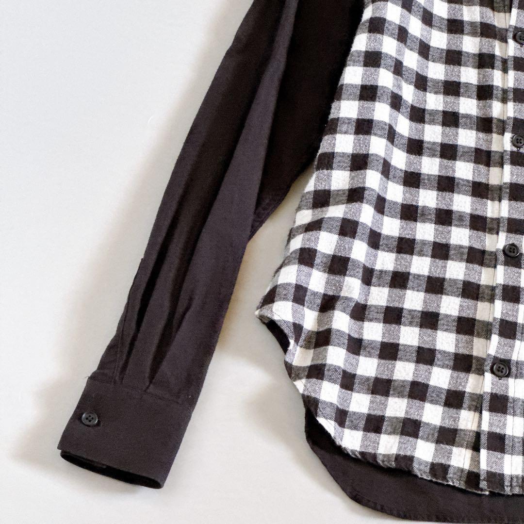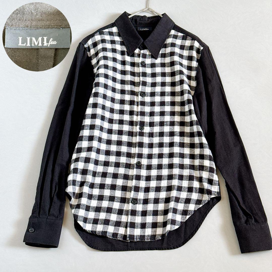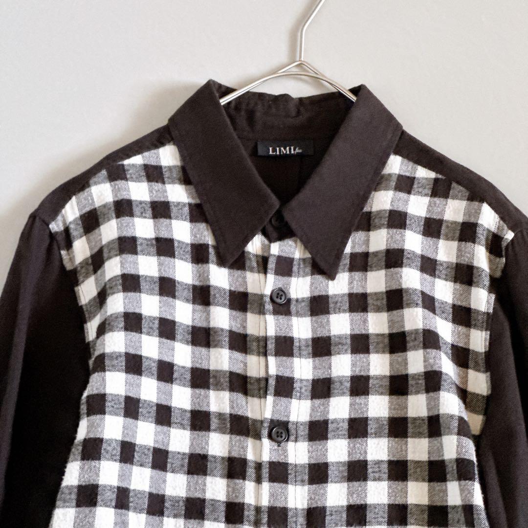 LIMIfeu リミフゥ シャツ チェックシャツ 切替シャツ 長袖 モノトーン モード YohjiYamamoto ヨウジヤマモト レディース 日本製 コットンシャツ ブラック ホワイト