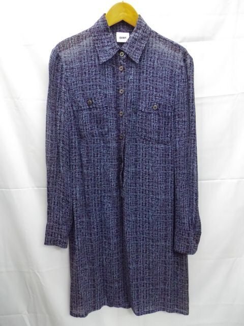 美品★DKNY◎ダナキャラン/ディーケーエヌワイ/長袖ワンピース/シャツワンピース/チュニック/プルオーバー/ブルー/イタリア製/2サイズ