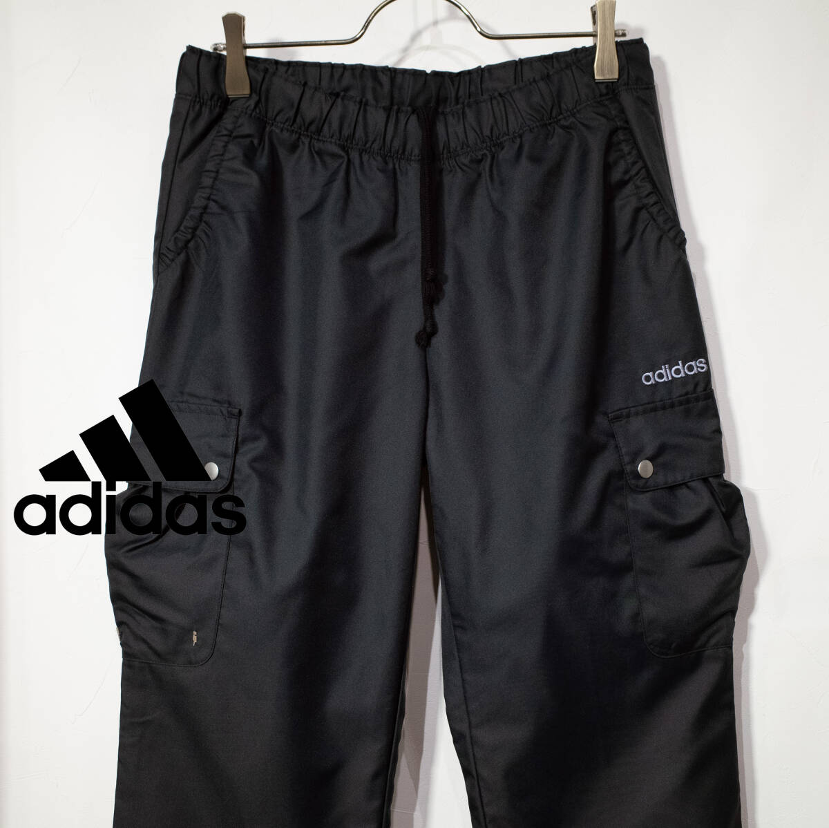 Mサイズ / adidas アディダス カーゴパンツ ブラック 刺繍ロゴ ドローコード 裾絞り 即決 送料無料 ストリート スポーツ 2006年 Y2K