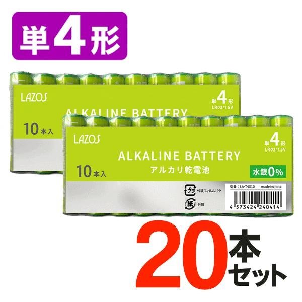 アルカリ乾電池 単4形 20本セット 乾電池 長寿命 水銀ゼロ 単四 防災 おもちゃ 予備 家電 送料無料 2M◇ LAZOS:単4乾電池10本入x2パック