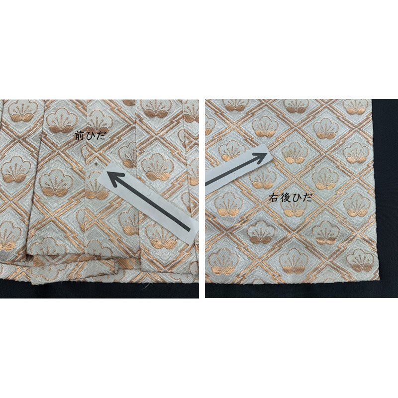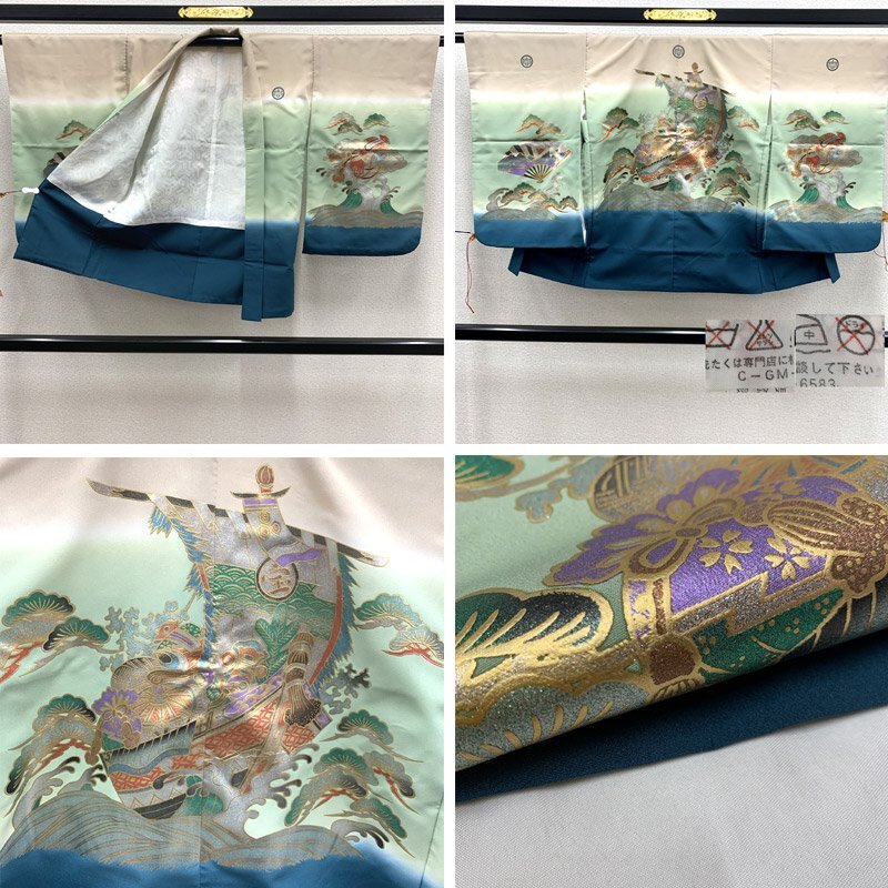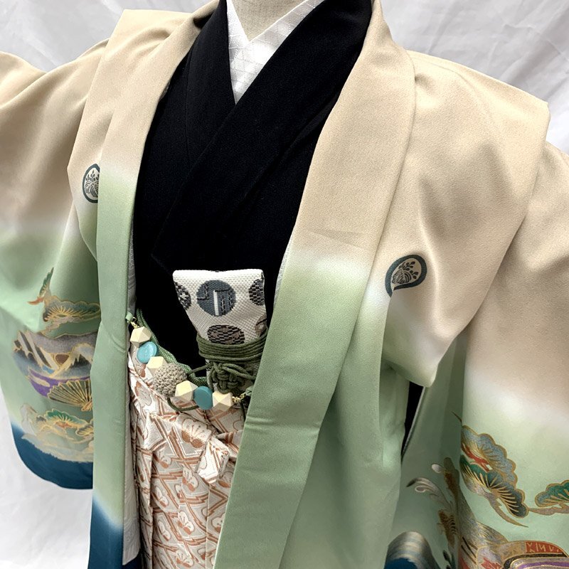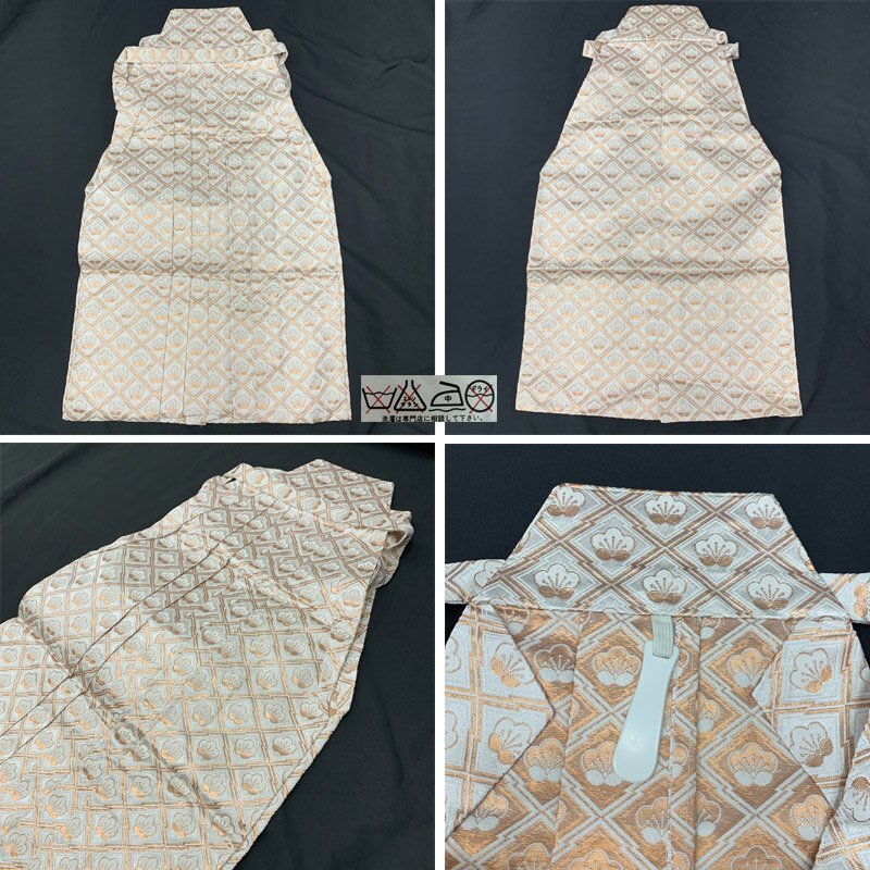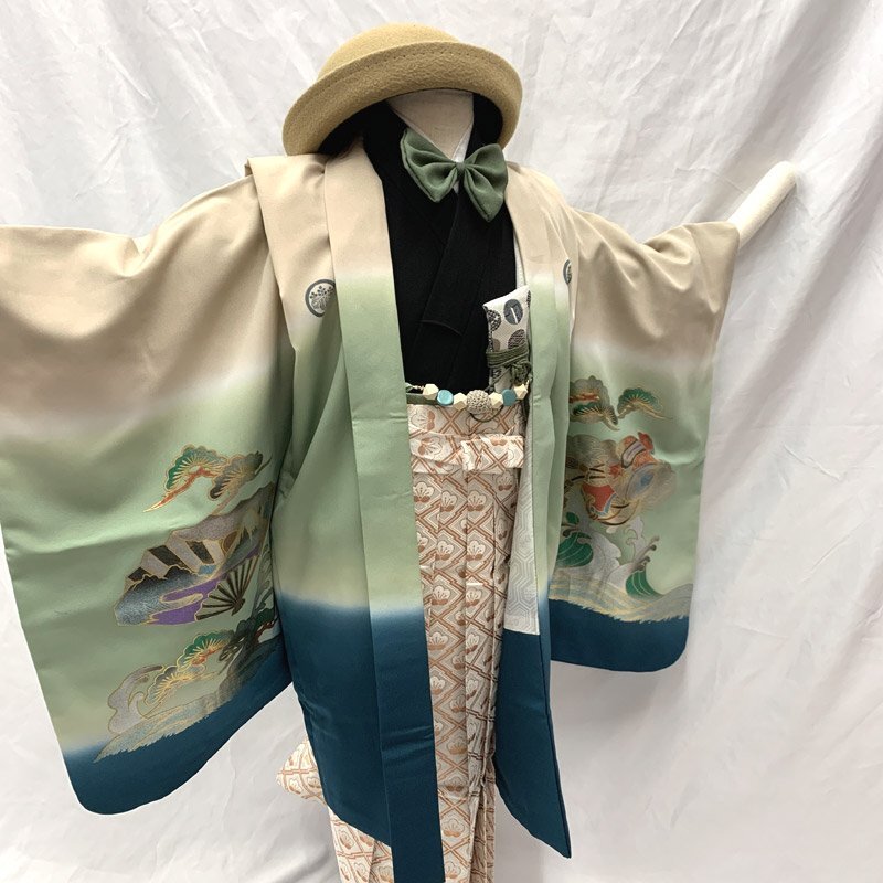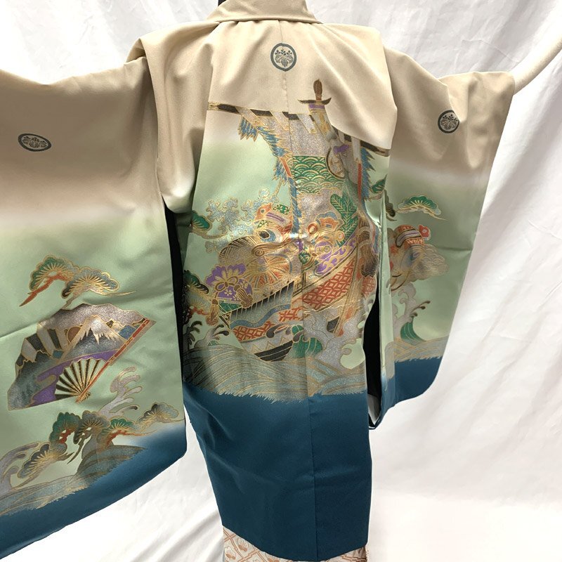 ■七五三 五歳 男児 着物&羽織&袴&角帯 宝船 五つ紋■良好 (No.gd) こちらの商品は着物、羽織、袴、角帯です。その他の小物はセットに含まれません。色彩豊かな宝船、扇などが大変豪華な5歳七五三のお着物セットです。五つ紋(丸に五三桐紋)入り。 別売りで小物セット(懐剣、お守り、羽織紐、末広)3500円がございます。*懐剣、お守り、羽織紐はハンドメイド商品のため、よれなどがある場合がございます。ハンドメイドにご興味、ご理解がない方のご購入はご遠慮くださいませ。 七五三後にはお節句や卒園式にもご利用いただけます。 (着物)使用感はございますが、特に目立つダメージはございません。 (羽織)右内袖、右外袖、左後身頃の袖付け辺りに薄いシミがございますが、遠目で見るとあまり目立ちません。肩上げをしておりませんので、お子様の裄丈、身丈に合わせてお直しをお願いします。 (袴)前ひだ裾上と右後ひだにシミがございますが、あまり目立ちません。 (長襦袢)こちらには長襦袢が付属いたしません。代わりにお子様の負担が少なく、便利な子ども用楽々衿をお勧めします。#ag楽々衿 (帯)ハントメイド品のため、よれがある場合がございますので、ご了承ください。 【表地素材】(着物)ポリエステル、(羽織)ポリエステル、(袴)ポリエステル、(帯)ポリエステル 【色】ベージュ/灰緑 *モニターによって色味は実際と異なる場合がございます。 【サイズ】(着物) 裄:47.5cm、肩上げ:2.8cm、袖幅:29cm、袖丈:55cm、丈(肩から):82.3cm、腰上げ:8cm、前幅:17.6cm、後幅:23.2cm (羽織) 裄:54.3cm、肩上げ:0cm、袖幅:30.5cm、袖丈:56cm、丈(肩から):71cm、腰上げ:0cm、前幅:12.5cm、後幅:24.3cm (袴) 紐下丈:59.7cm (帯) 幅:6.5cm、長さ:225cm *素人採寸のため、多少の誤差はご容赦ください。 お求め安い価格での出品ですので、いかがでしょうか? |
