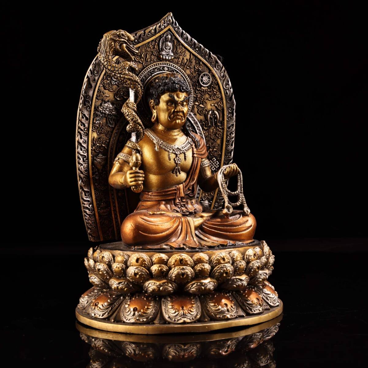 【超珍館蔵】銅製 描金 彩繪 不動明王像 仏像 宗教 仏教古美術 供養品 古賞物 古董品 古美術品 時代物 旧家蔵出 稀少珍蔵品