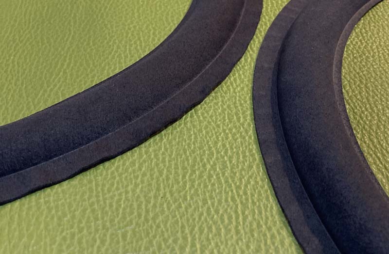 ファンテック・オリジナル 素材には「ウルトラスエード」や「アルカンターラ」の名で知られる「東レ・エクセーヌ」を使用しております。軽量で柔らく、適度な反発力と復元性があり、音響特性に大変優れた革新的な素材となっております。自社にて熱成形プレス機で加工、製品化をしております。 小音量時にも入力信号にたいして機敏に反応するエッジで、低音の解像度が良く、動作は温度変化に影響されません。また、劣化がないためエッジの寿命は半永久的となります。 現在に至ってウレタンエッジが音響特性上最も優れているとされておりますが、経年劣化での音質の変化、加水分解で剛性を失い、朽ちるという問題があります。また、業務用スピーカーに多用されているクロス素材のエッジ(繊維を織った布)は耐久性はあるものの、形を保たせるための固着剤を要するため、他の素材と比較して固いものも多く、経年で更に硬化することがあります。柔らかめに作られているものは反発(復帰力)が十分でなく、振幅制御にスピーディーに反応しません。 人工皮革エッジは《高音質、高耐久性》、安心して末永くご使用できるエッジです。