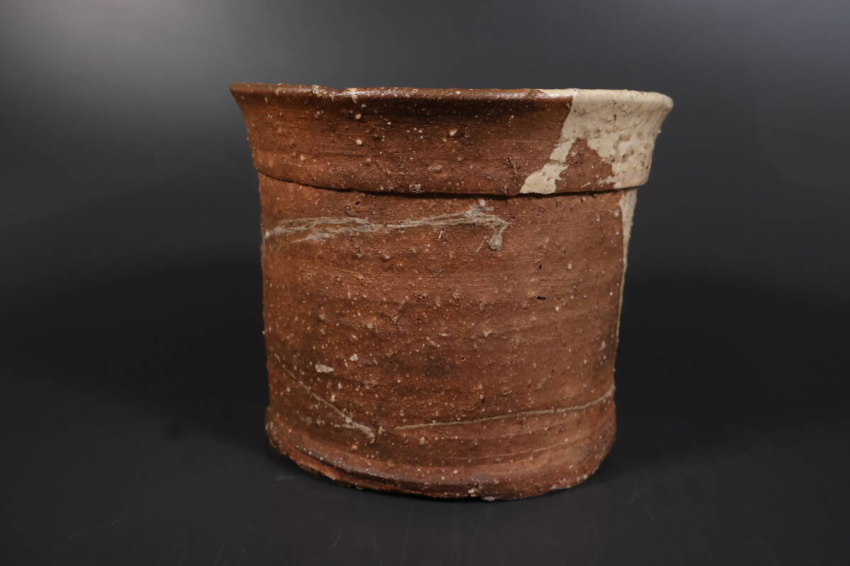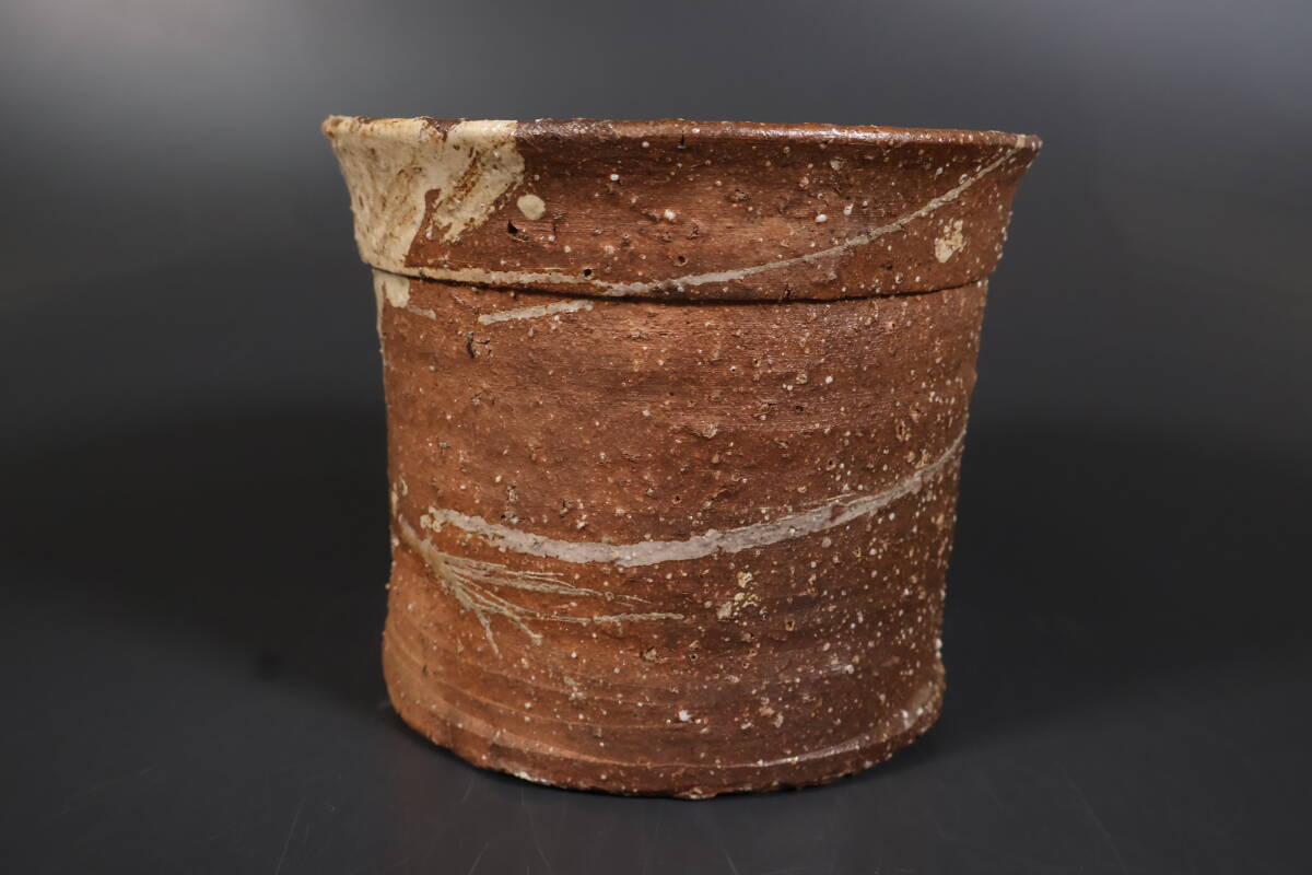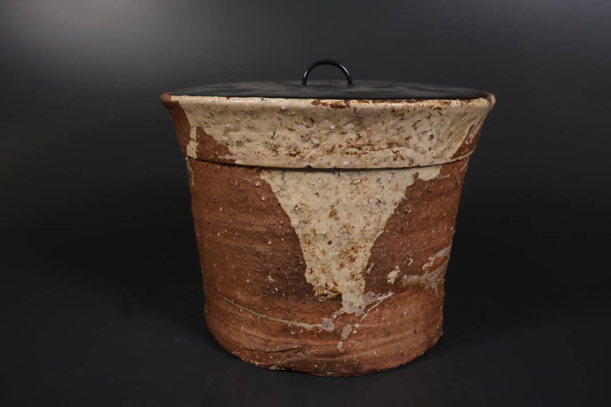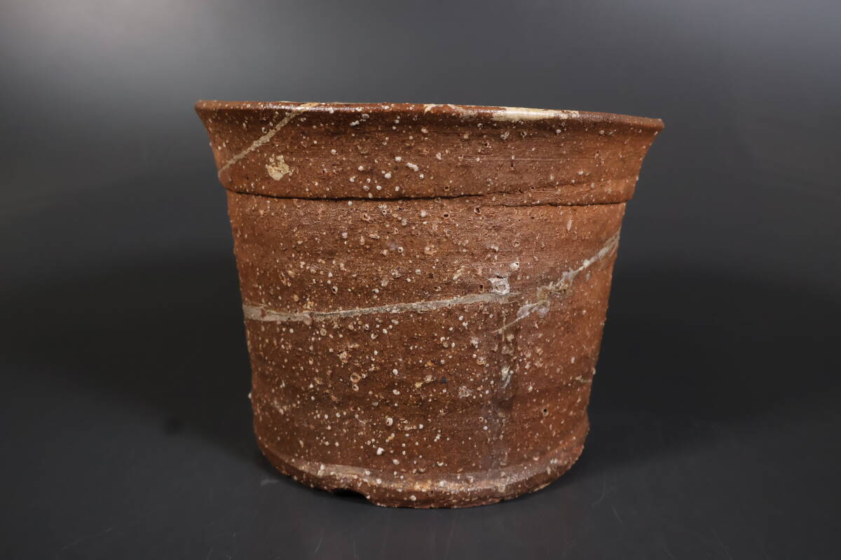【和】(A3251) 時代古作 桃山江戸 古信楽鬼桶水指 時代箱有 茶道具