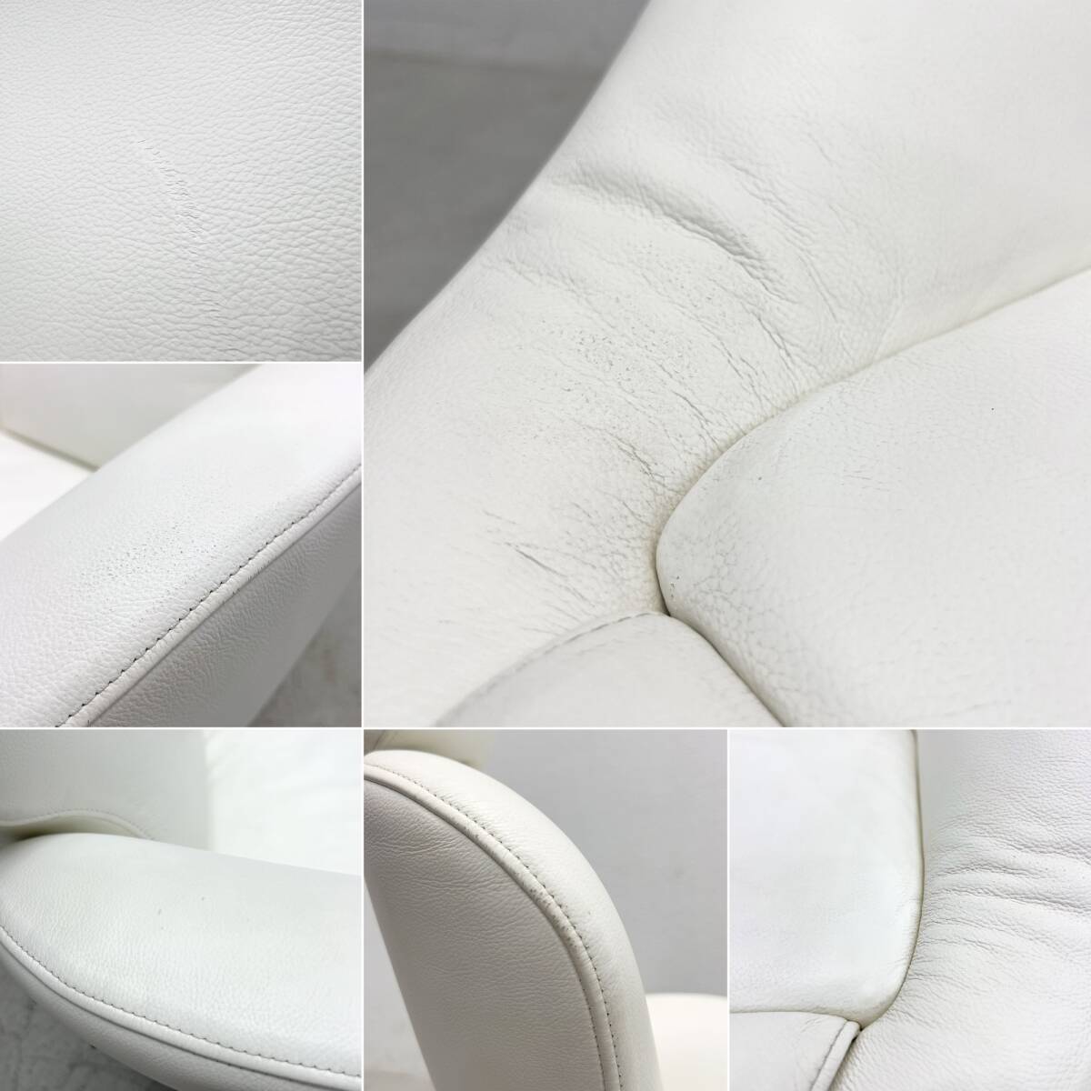 | コンディション | 使用に伴い、ソファの肘掛け部分に落としきれない軽微な黒ずみや、わずかなレザーの擦れが見受けられます。背面および座面部分には、ごく軽微な汚れと、目立たない程度の補修塗り痕がございますが、いずれもご使用時に大きく気になるものではございません。 脚部の金属部分にはくすみや黒ずみが見られますが、目立つ位置ではないため、全体の美観を損なうものではないと存じます。 また、正面から見た際に右側に軽微な傾きが見受けられますが、着座には支障ございません。 そのほか、大きなダメージやぐらつきなどの構造的な問題はなく、全体として中古品としては概ね良好なコンディションを保っております。 ※特筆すべきコンディションは出来るだけ記載させて頂きますが、細かい擦れや傷、汚れ等を完全にお伝えする事は出来ません。画像をご確認の上、ご入札をご検討下さいませ。 ※取扱説明書や保証書等は記載が無い限り付属いたしません。 |