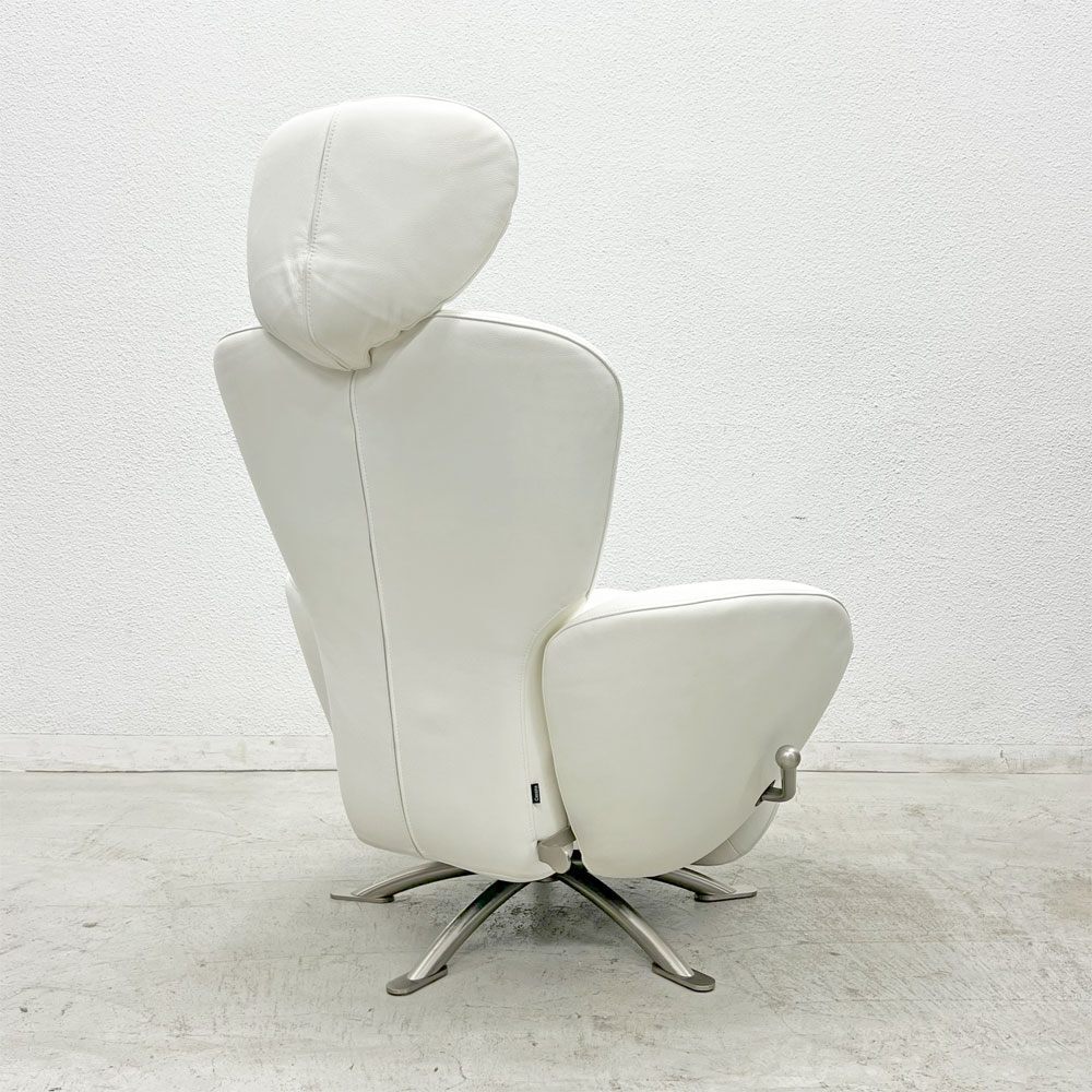 | コメント | カッシーナ( Cassina )は17 世紀イタリアに誕生し、家具業界における数少ないリーディングブランドとして世界的にも認知度が高く、その製品の多くがMoMAのパーマネントコレクションに選定されています。 こちらの「DODO K10」は、日本を代表するデザイナー・喜多俊之によって生み出された、革新的かつ快適性に優れたリクライニングチェアです。 コンパクトながらも多機能な設計が特徴で、背もたれは本体サイドのレバー操作により、お好みの角度で自由に固定することが可能。 さらに、フットレストの調整により、シェーズロングとしてもお使いいただける柔軟性を備えています。 スイベル機能(回転機能)も搭載しており、座ったままでの自然な動きもサポート。 構造にはスチールフレームとモールドポリウレタンフォーム、ポリエステルパッディングを採用し、しっかりとした座り心地と上質なフィット感を実現しています。 脚部やレバーにはニッケルメッキ仕上げのスチール素材を使用し、洗練されたモダンな印象を演出。 上質な本革張りと相まって、空間を格調高く彩ります。 ホームシアターやリビングでのリラクゼーションに最適な一脚であり、デザイン性と機能性を兼ね備えた現代的なチェアとして、長くご愛用いただける逸品です。 ※カラーはアイボリーに近いホワイトです。 8枚目右上写真の色合いが実物に近しい色合いとなっております。 ※当ショップは、主にリサイクル品を取り扱っております。基本的にUSED品である事をご理解頂き、ご入札をご検討下さいませ。 |
