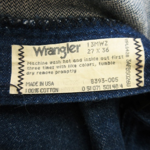 ラングラー WRANGLER 90s ヴィンテージ USA製 13MWZ デニム パンツ ジーンズ ストレート ハイウエスト コットン 27 紺 ネイビー