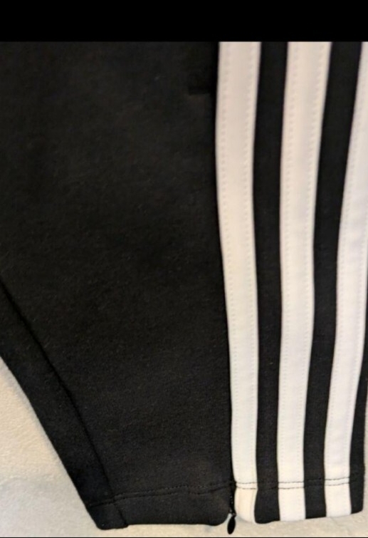 細身のシルエットの3本線のスウェットパンツです。左右のウエスト部分にファスナー付きのミニポケットがあります。裾はファスナーがついているので着脱か楽だと思います。気に入って購入したのですが、サイズが合わなかったので出品しました。