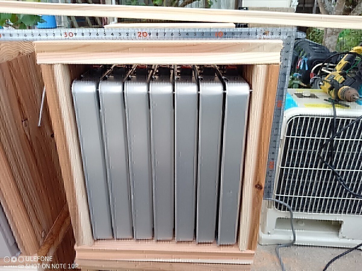バッテリーは7枚全て電圧を確認し、インバータ経由で家電を動かし、テスト済みです。