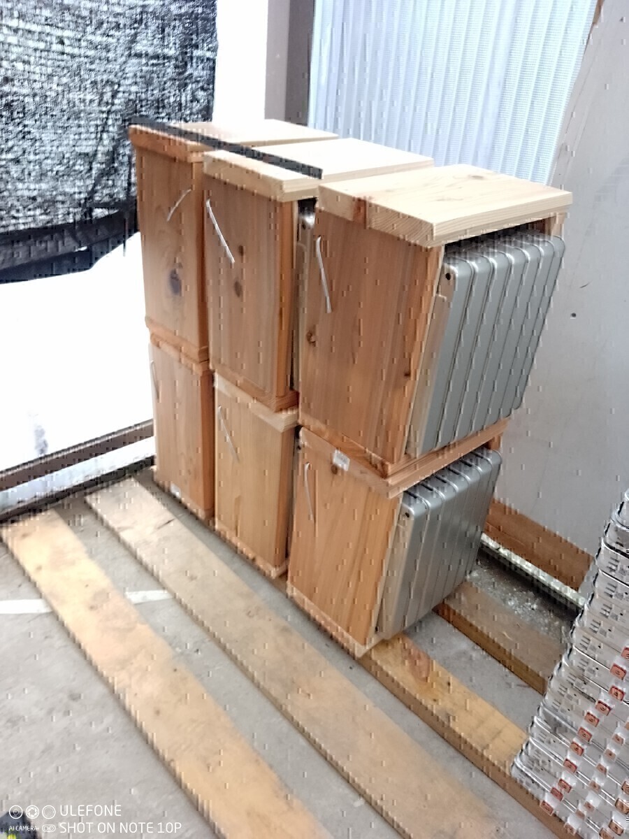 箱を杉板で作成し、4ミリの針金で固定しました。