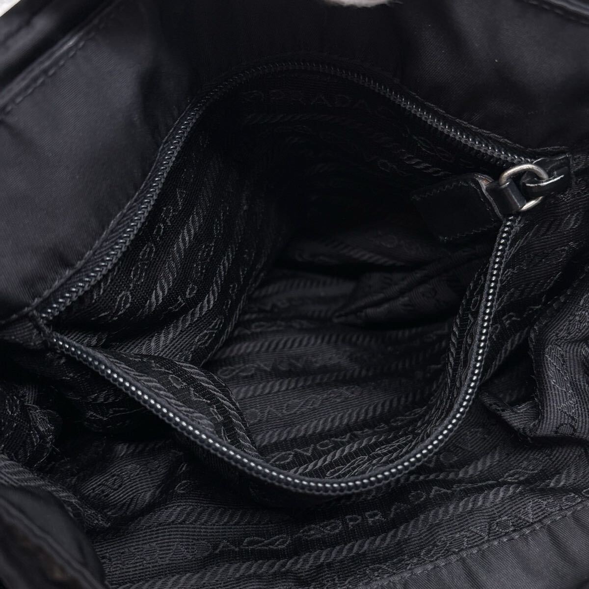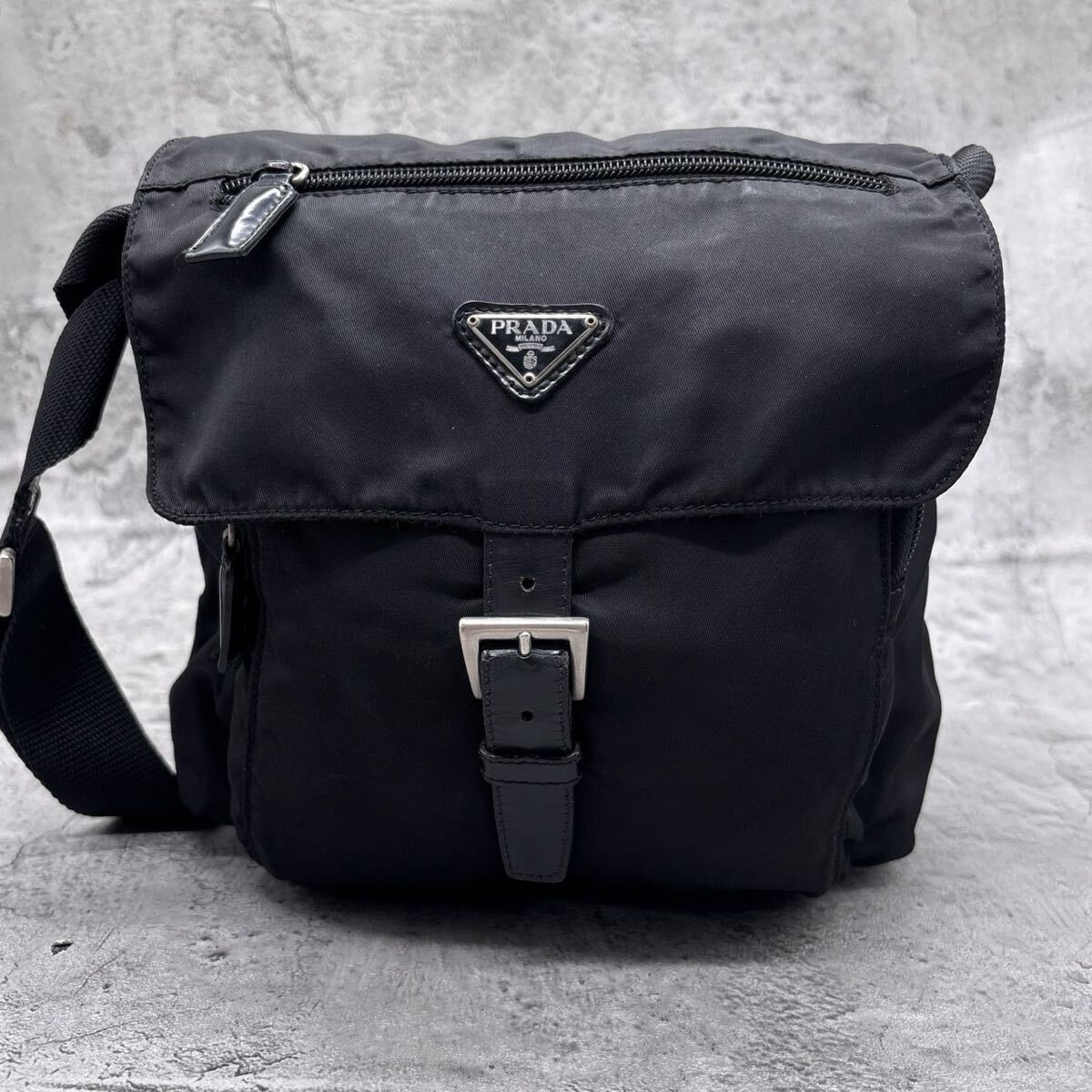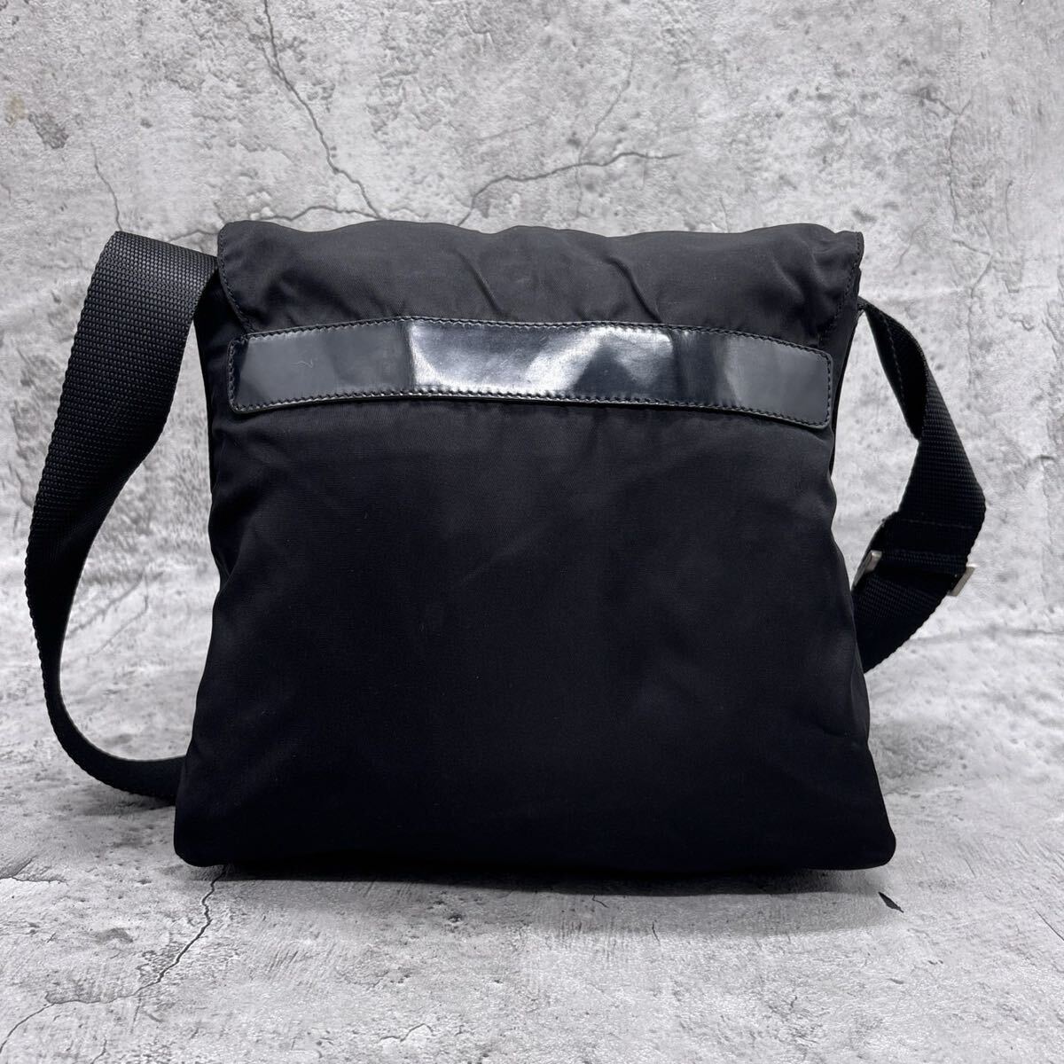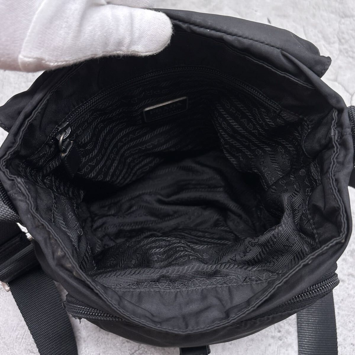 【美品】PRADA プラダ ショルダーバッグ 三角 トライアングル ロゴ 白タグ ブラック 黒 テスートナイロン 本革 クロス 斜め 肩掛け 肩がけ